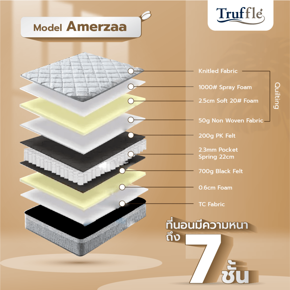 Truffle ที่นอน Pocket Spring รุ่น Amerzaa 3.5 ฟุต หนา 10 รับประกัน 15 ปี