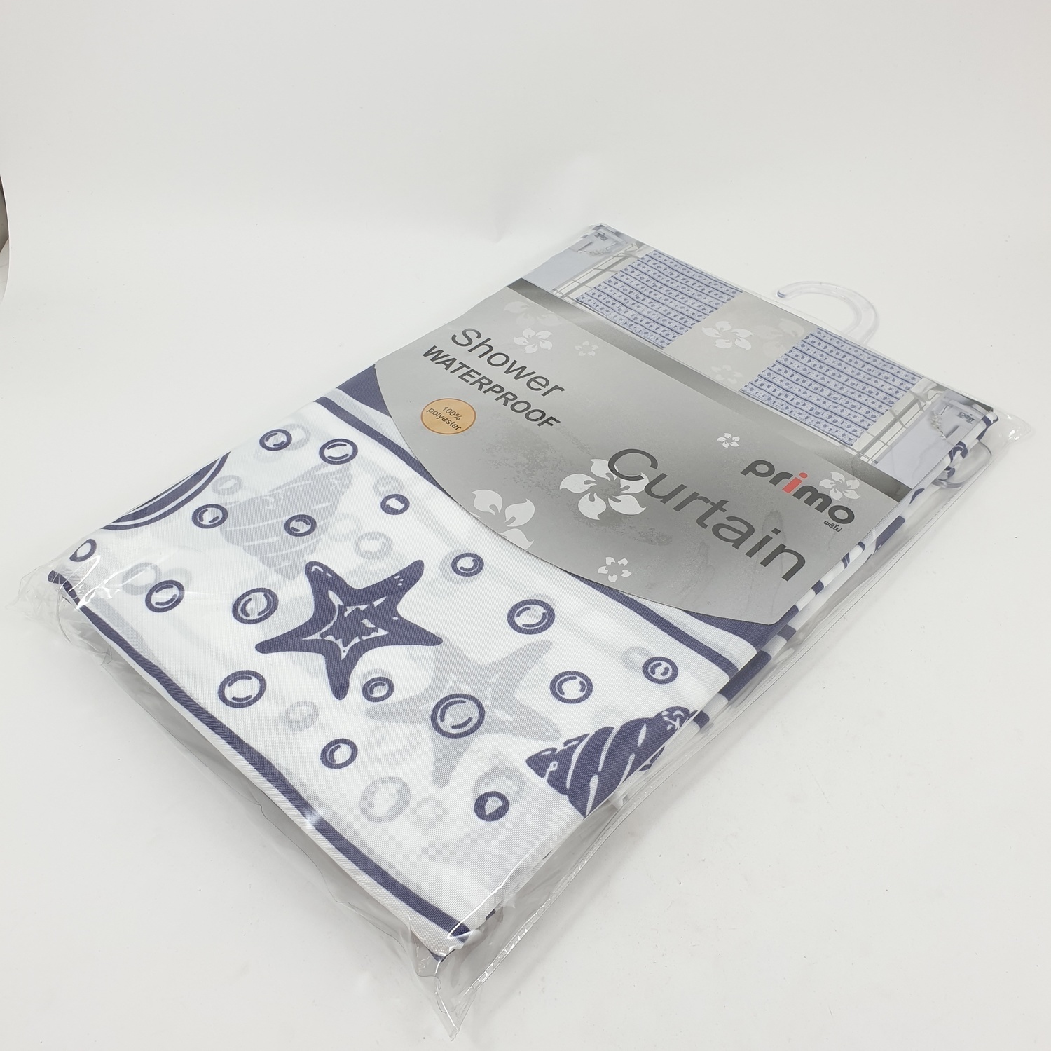 Primo ม่านห้องน้ำโพลีเอสเตอร์ ลายปลาดาว รุ่น DDDF02 ขนาด 180×180 ซม. สีม่วง