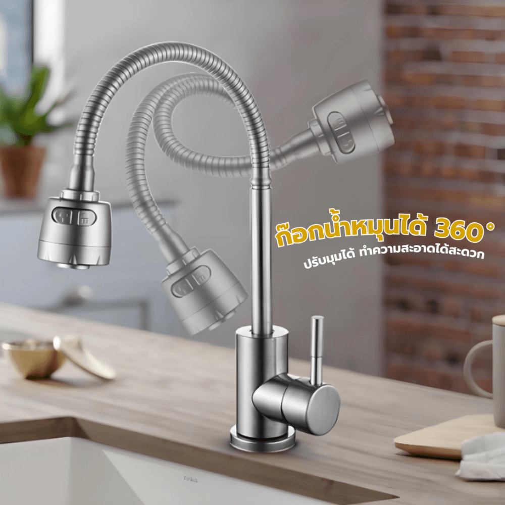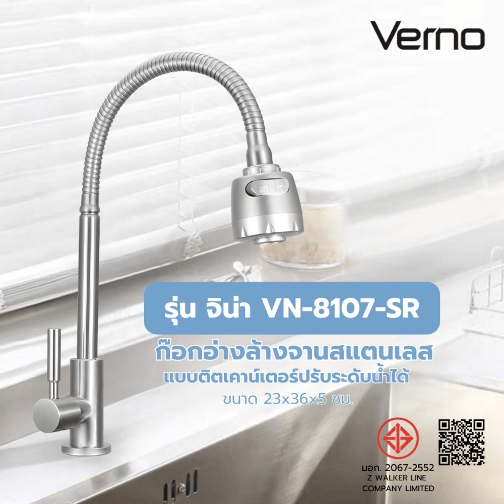 Verno ก๊อกอ่างล้างจานสเตนเลสปรับระดับน้ำได้ รุ่น จีน่า VN-8107-SR