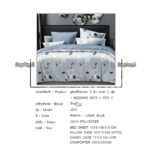 Truffle ชุดเครื่องนอน5 ชิ้น ขนาด 5 ฟุต รุ่น JZ02 สีฟ้าอ่อน