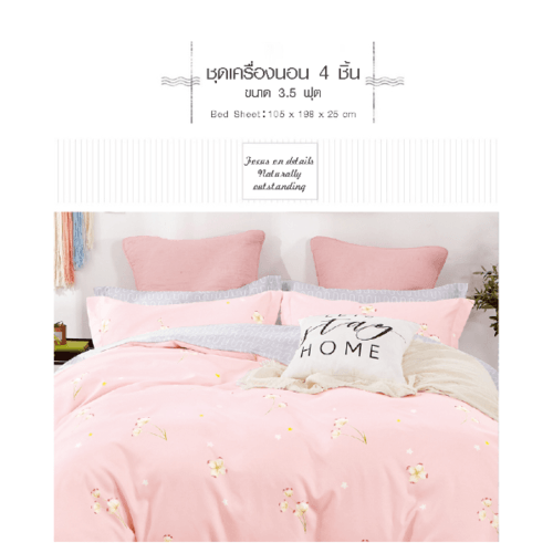 Truffle ชุดเครื่องนอน 4 ชิ้น ขนาด 3.5 ฟุต รุ่น JZ04 สีชมพู