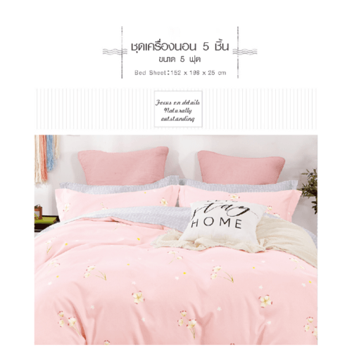 Truffle ชุดเครื่องนอน 5 ชิ้น ขนาด 5 ฟุต รุ่น JZ05 สีชมพู