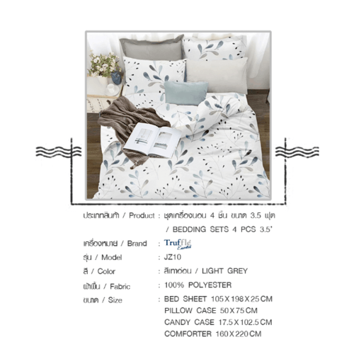 Truffle ชุดเครื่องนอน 4 ชิ้น ขนาด 3.5 ฟุต รุ่น JZ10 สีเทาอ่อน