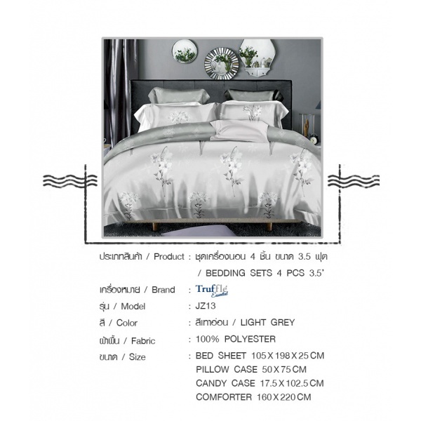 Truffle ชุดเครื่องนอน 4 ชิ้น ขนาด 3.5 ฟุต รุ่น JZ13 สีเทาอ่อน