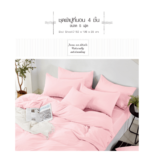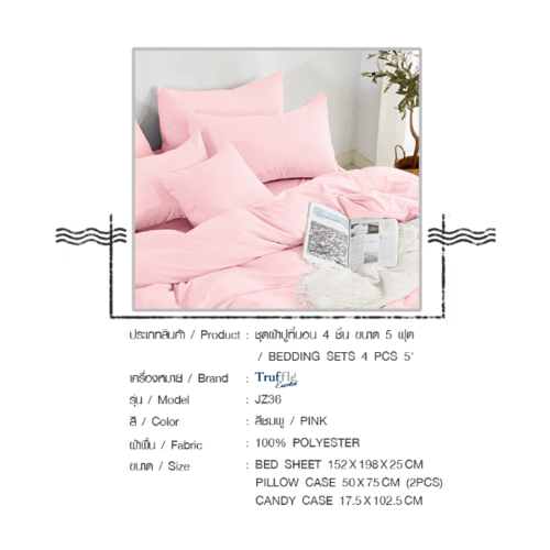 Truffle Essential ชุดผ้าปูที่นอน 4 ชิ้น ขนาด 5 ฟุต รุ่น JZ36 สีชมพู