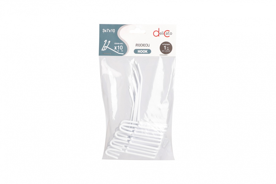 Delicato ตะขอแขวน 3x7x10 ซม. สีขาว (10ชิ้น/แพ็ค)