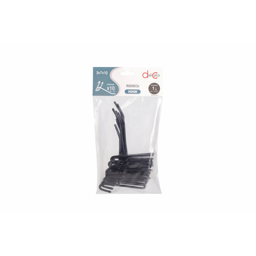 Delicato ตะขอแขวน 3x7x10 ซม. สีดำ (10ชิ้น/แพ็ค)