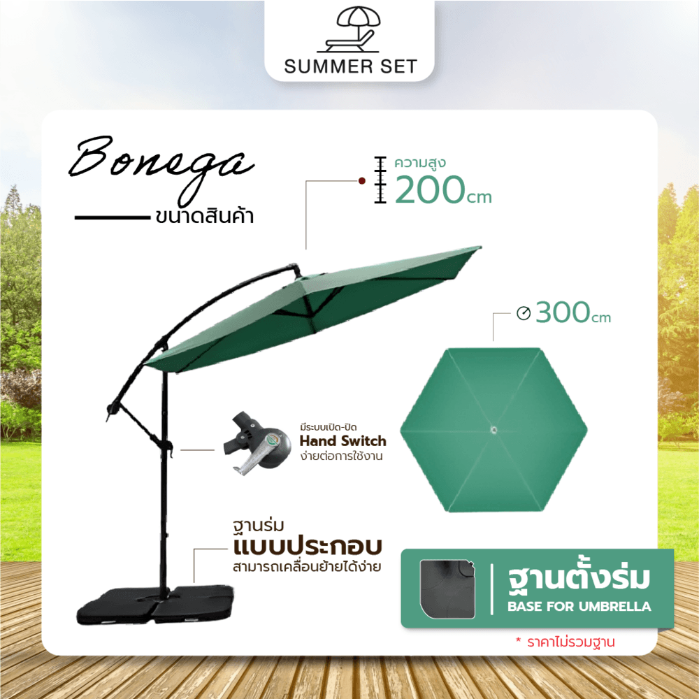 Summer Set ร่มสนาม Bonega ขนาด 300×300×200 ซม. รุ่น JM25G สีเขียวเข้ม