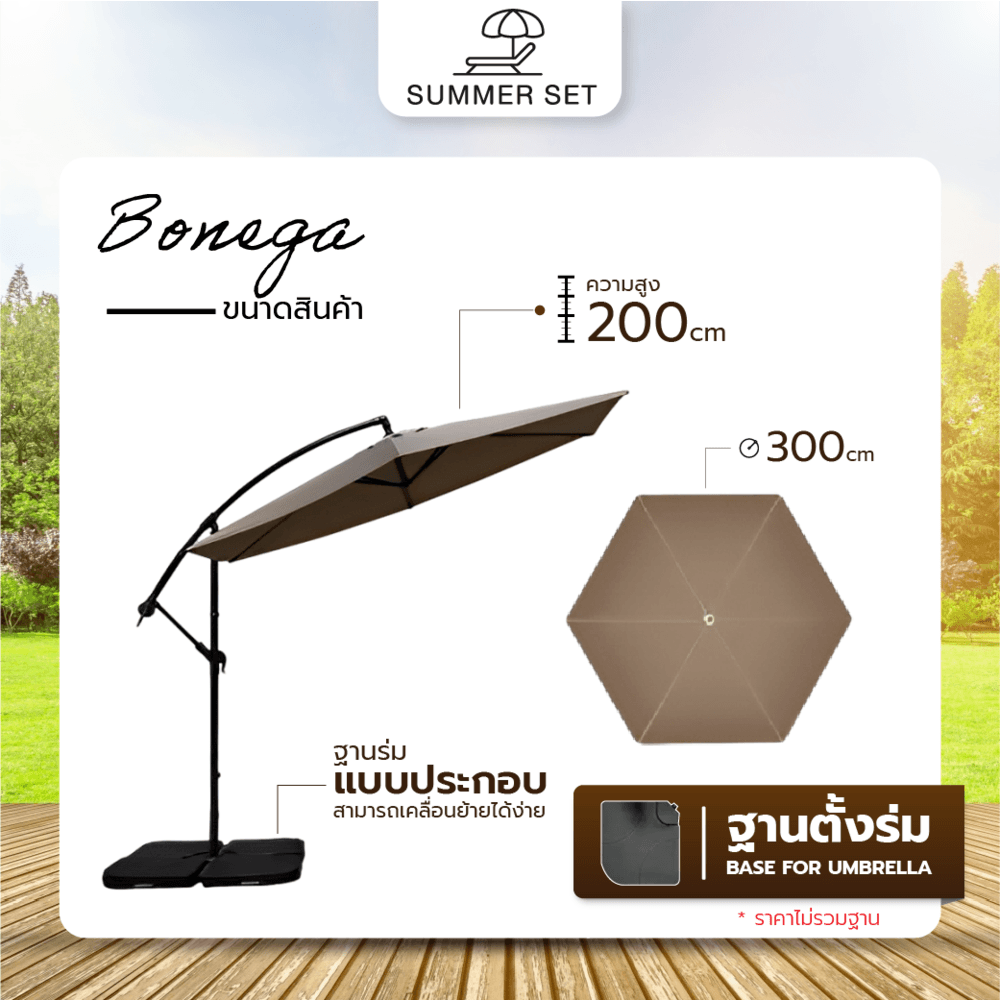 Summer Set ร่มสนาม Bonega ขนาด 300×300×200 ซม. รุ่น JM25C สีกาแฟ