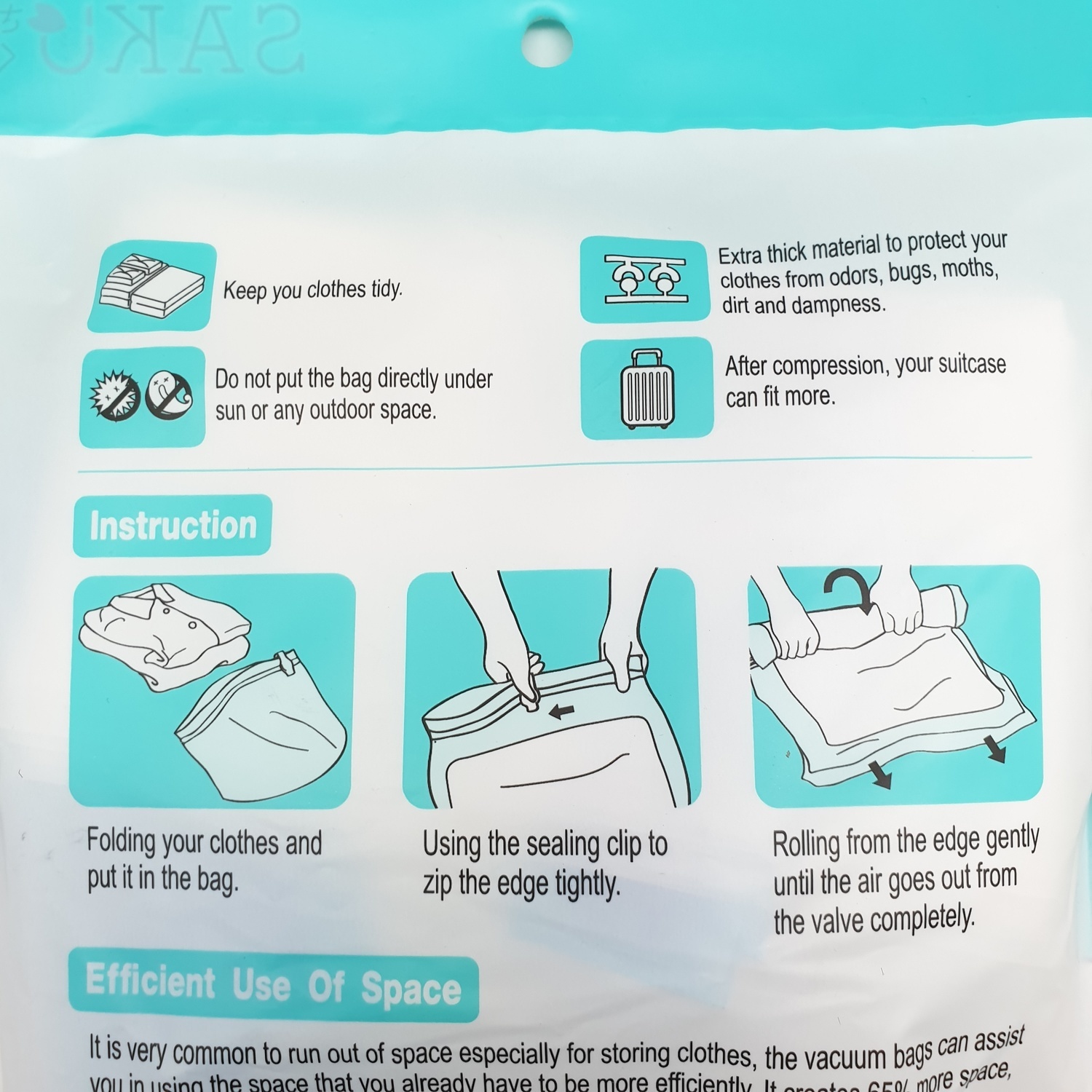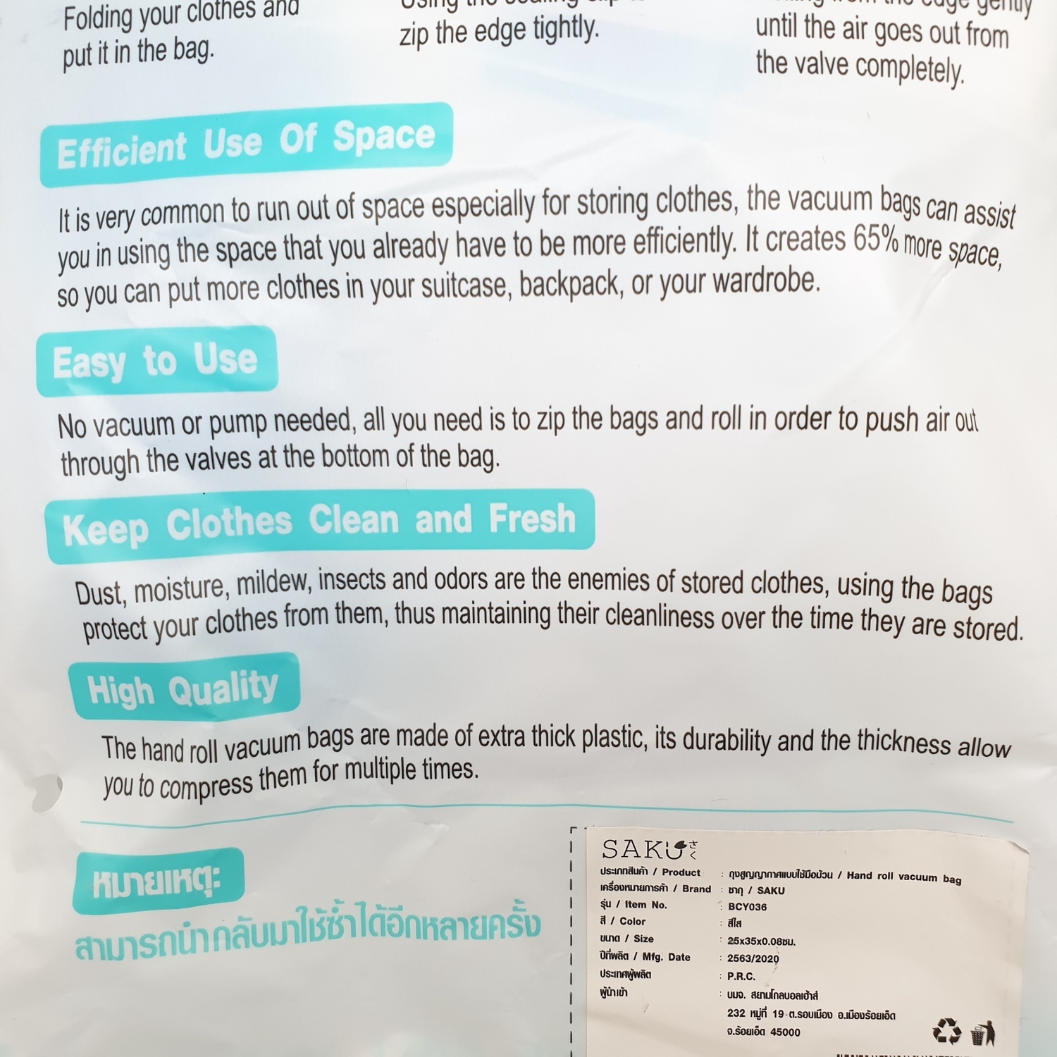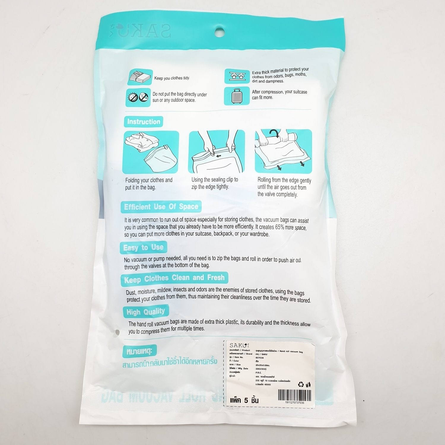 SAKU ถุงสูญญากาศแบบใช้มือม้วน BCY036 ขนาด 25x35x0.08ซม. สีใส แพ็ค 5 ชิ้น