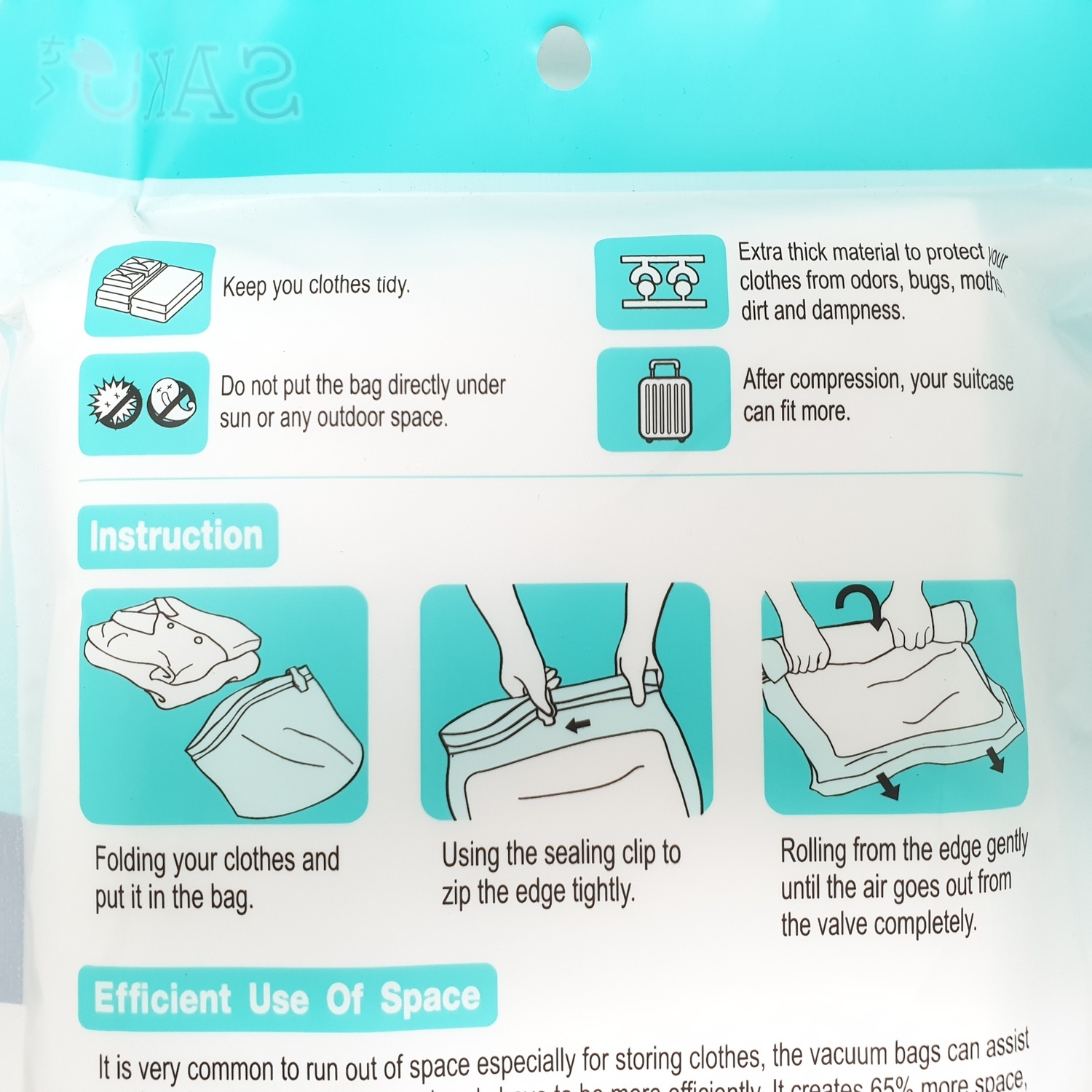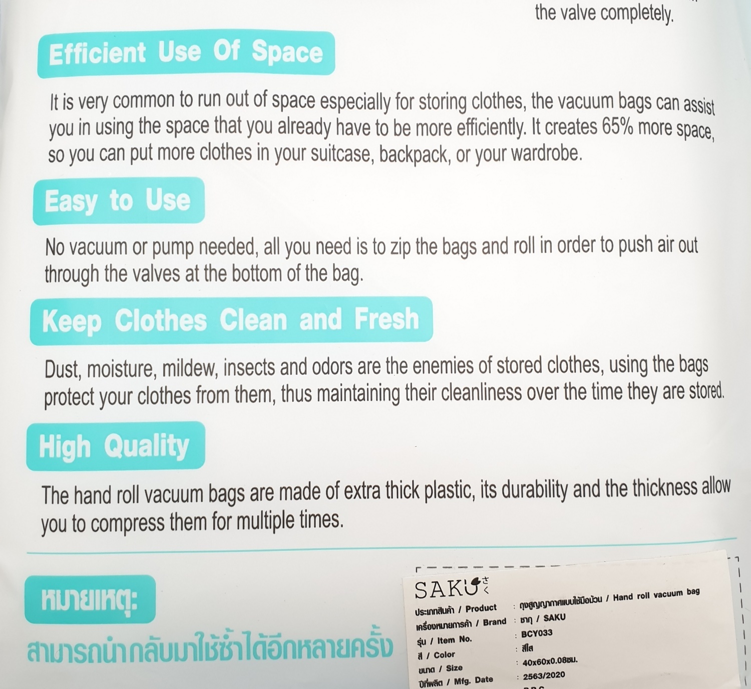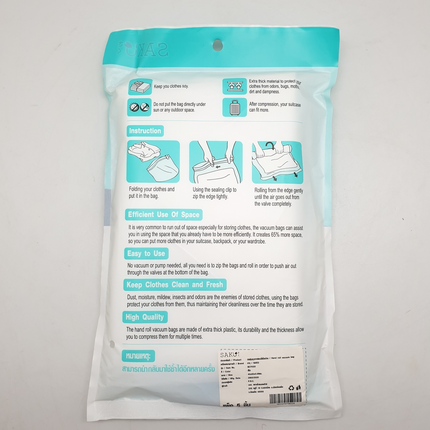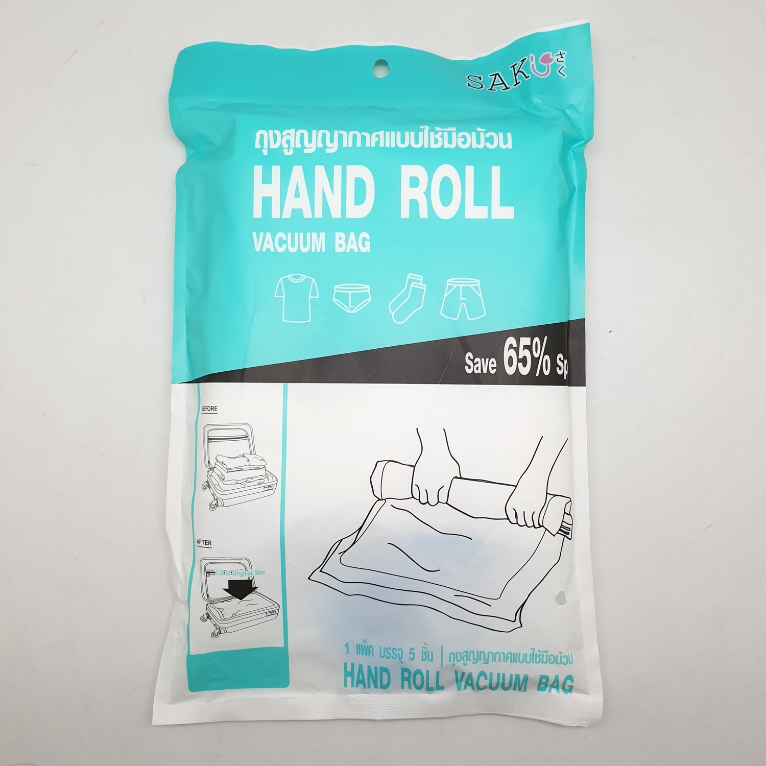 SAKU ถุงสูญญากาศแบบใช้มือม้วน BCY033 ขนาด 40x60x0.08ซม. สีใส แพ็ค 5 ชิ้น