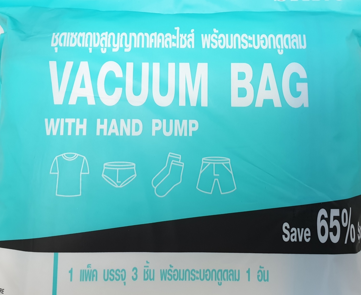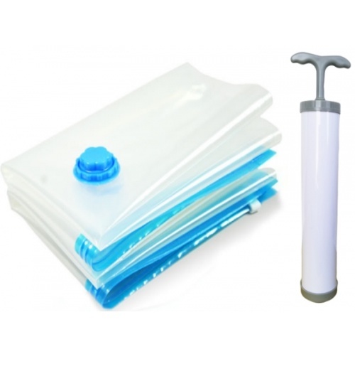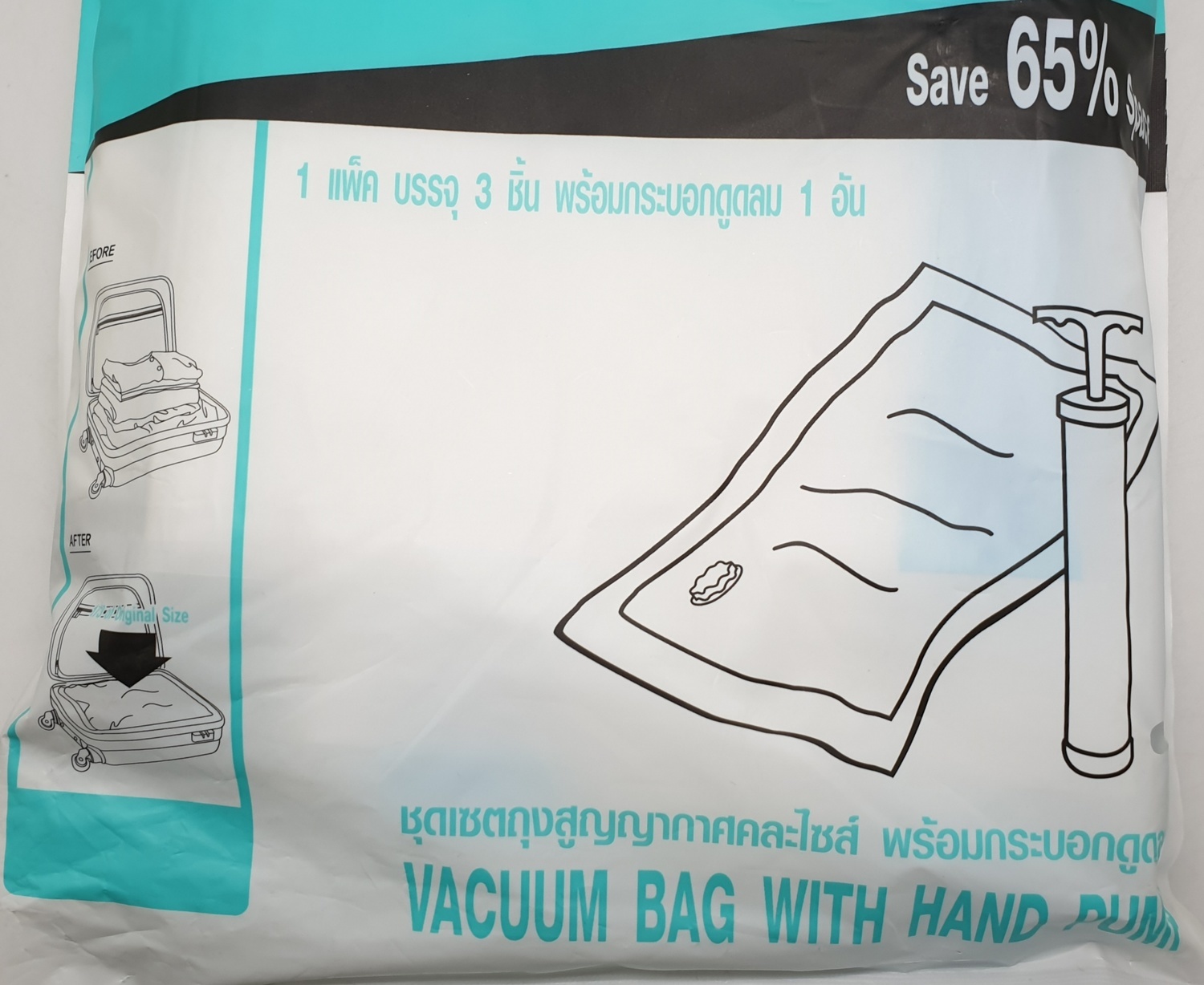 SAKU ถุงสูญญากาศ BCY029 ขนาด 60x80x0.08ซม. สีใส แพ็ค 3 ชิ้น พร้อมกระบอกดูดลม