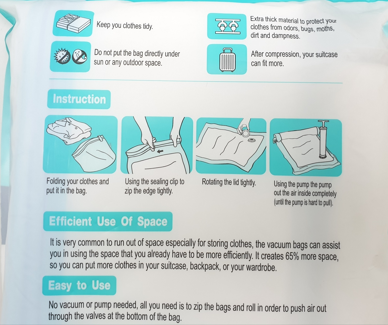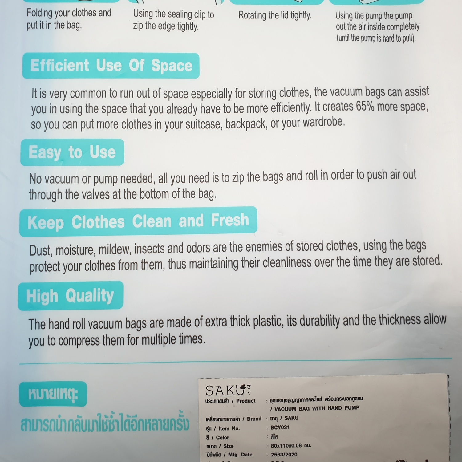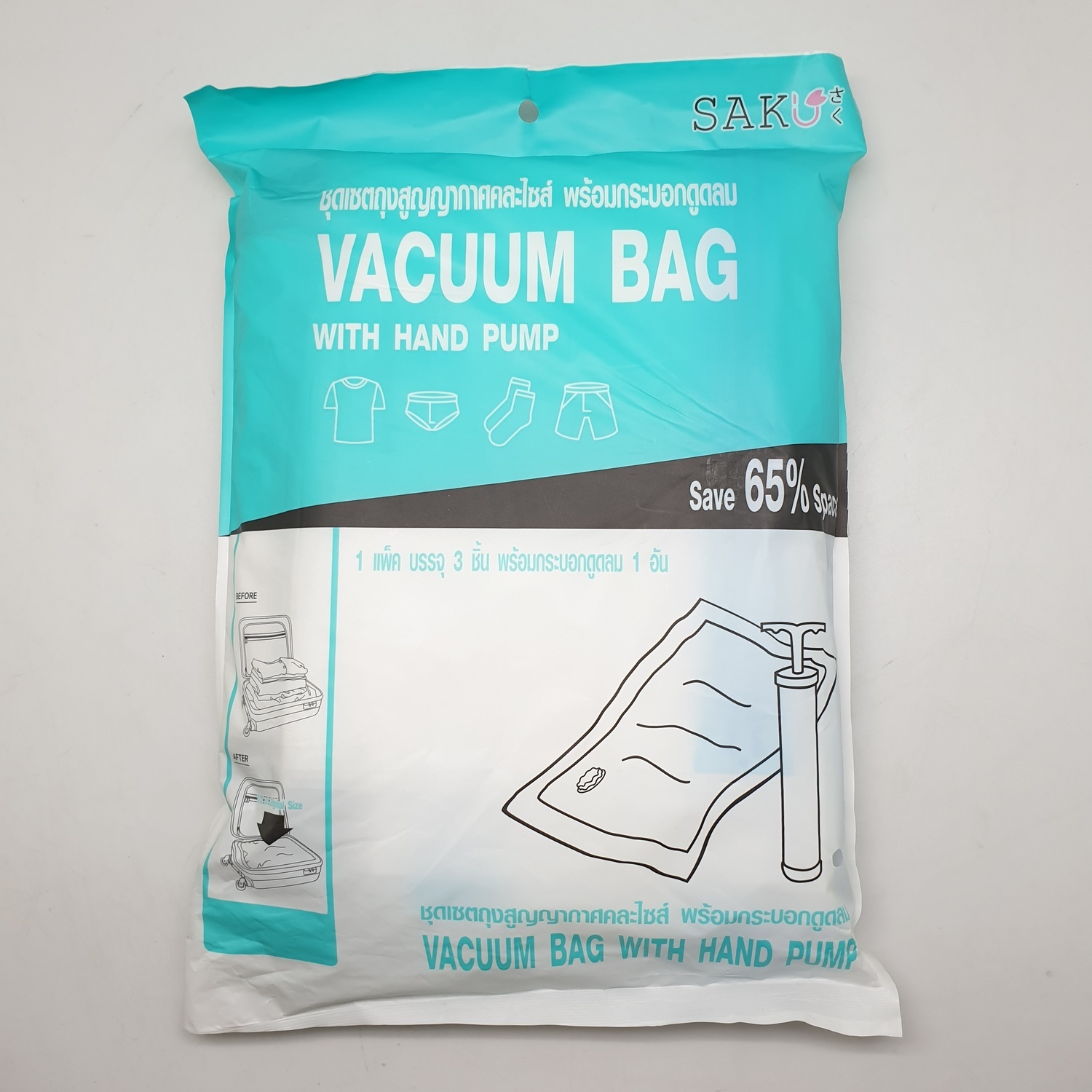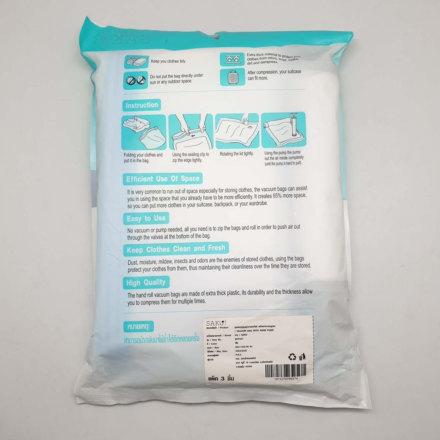 SAKU ถุงสูญญากาศ BCY031 ขนาด 80x110x0.08ซม. สีใส แพ็ค 3 ชิ้น พร้อมกระบอกดูดลม