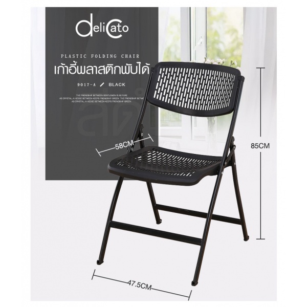 Delicato เก้าอี้พลาสติกพับได้ 9017-A ขนาด 47.5×58×85ซม. สีดำ
