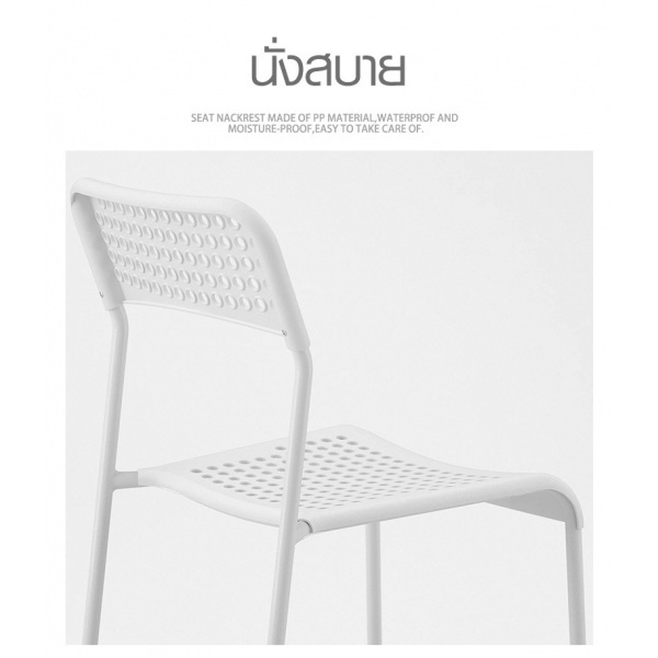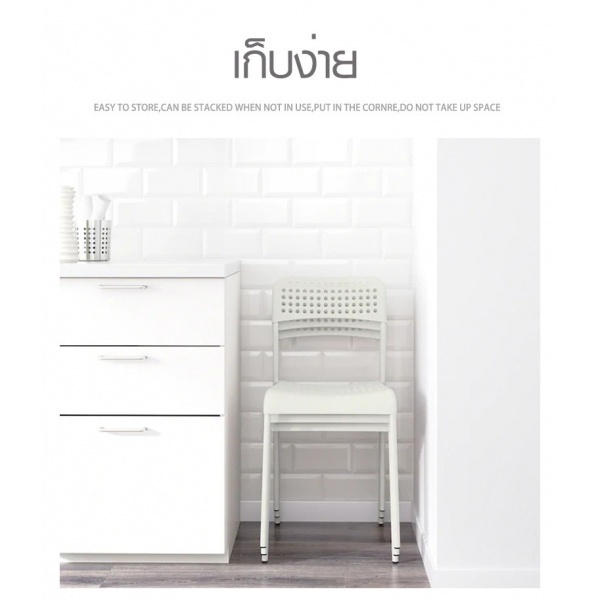ดีไซน์สวยงาม ทันสมัย ผลิตจากพลาสติกคุณภาพดี มีประโยชน์ใช้สอยมากมาย ใช้นั่งหรือใช้วางของก็ได้เช่นกัน ใช้ได้ทั้งในห้องนั่งเล่น ห้องทำงาน พนักพิงมีลักษณะโค้งงอเล็กน้อยทำให้ไม่ดันหลังเวลานั่ง ตัวเก้าอี้สามารถซ้อนทับกันได้ช่วยลดพื้นที่จัดเก็บ และเพิ่มความเป็นระเบียบเรียบร้อยให้แก่พื้นที่ภายในบ้านของท่าน