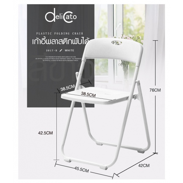 Delicato เก้าอี้พลาสติกพับได้ 3017-B ขนาด 44×44×75ซม. สีขาว
