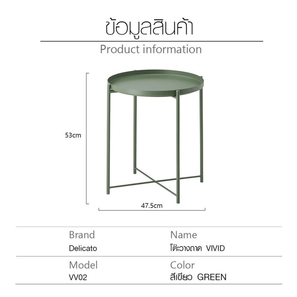 Delicatoโต๊ะวางถาด VIVID ขนาด 47.5x53ซม. รุ่น VV02 สีเขียว