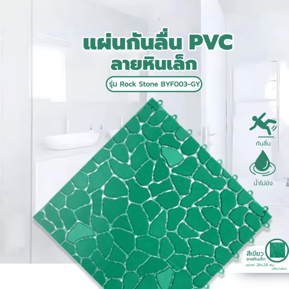 แผ่นกันลื่น PVC รุ่น Rock Stone BYF003-GN ขนาด 28×28 ซม. สีเขียว (4แผ่น/แพ็ค)