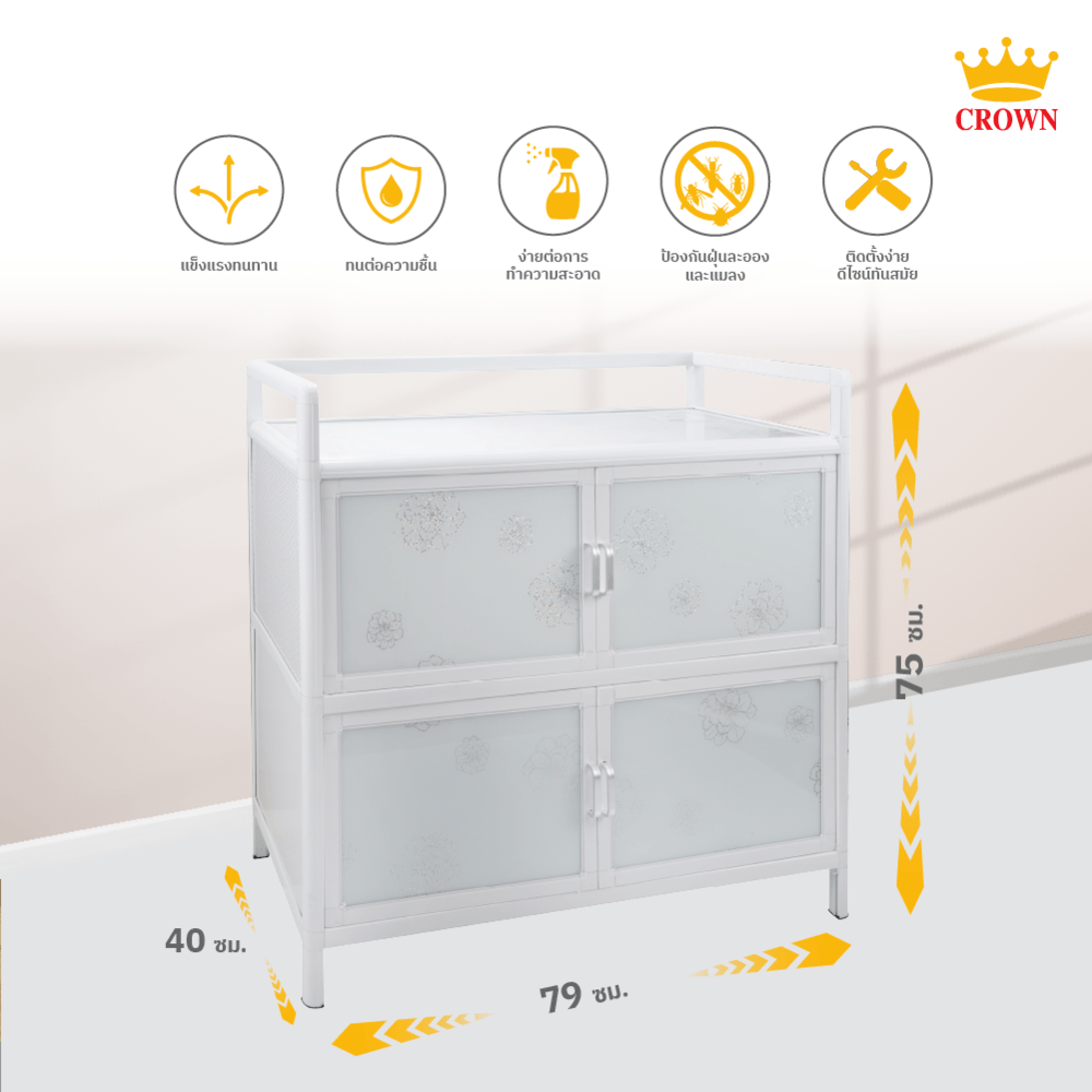 CROWN ตู้อเนกประสงค์ในครัว 79x40x75 ซม. PQS-LGZ8-2 สีขาว