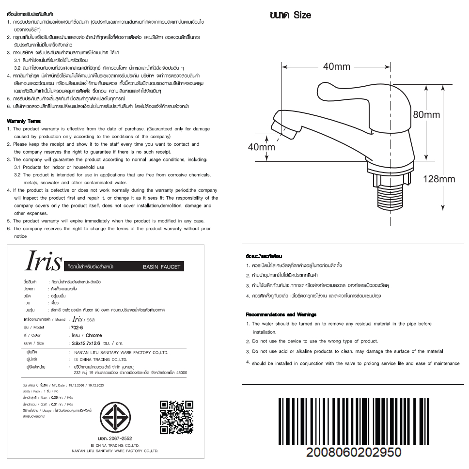 | คุณสมบัติ | รายละเอียดสินค้า |