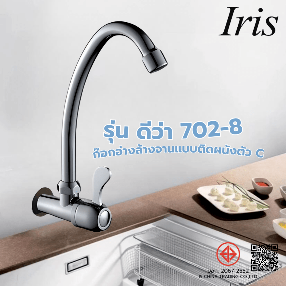 Iris ก๊อกอ่างล้างจานแบบติดผนังตัว C รุ่น ดีว่า 702-8
