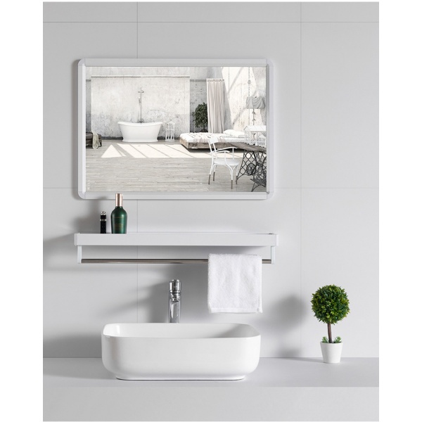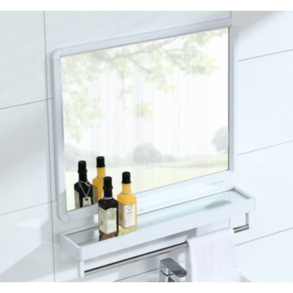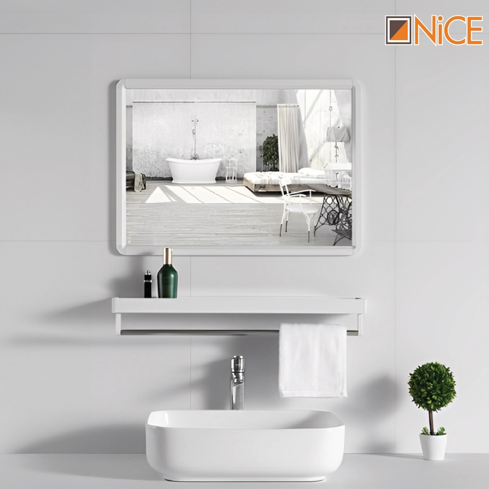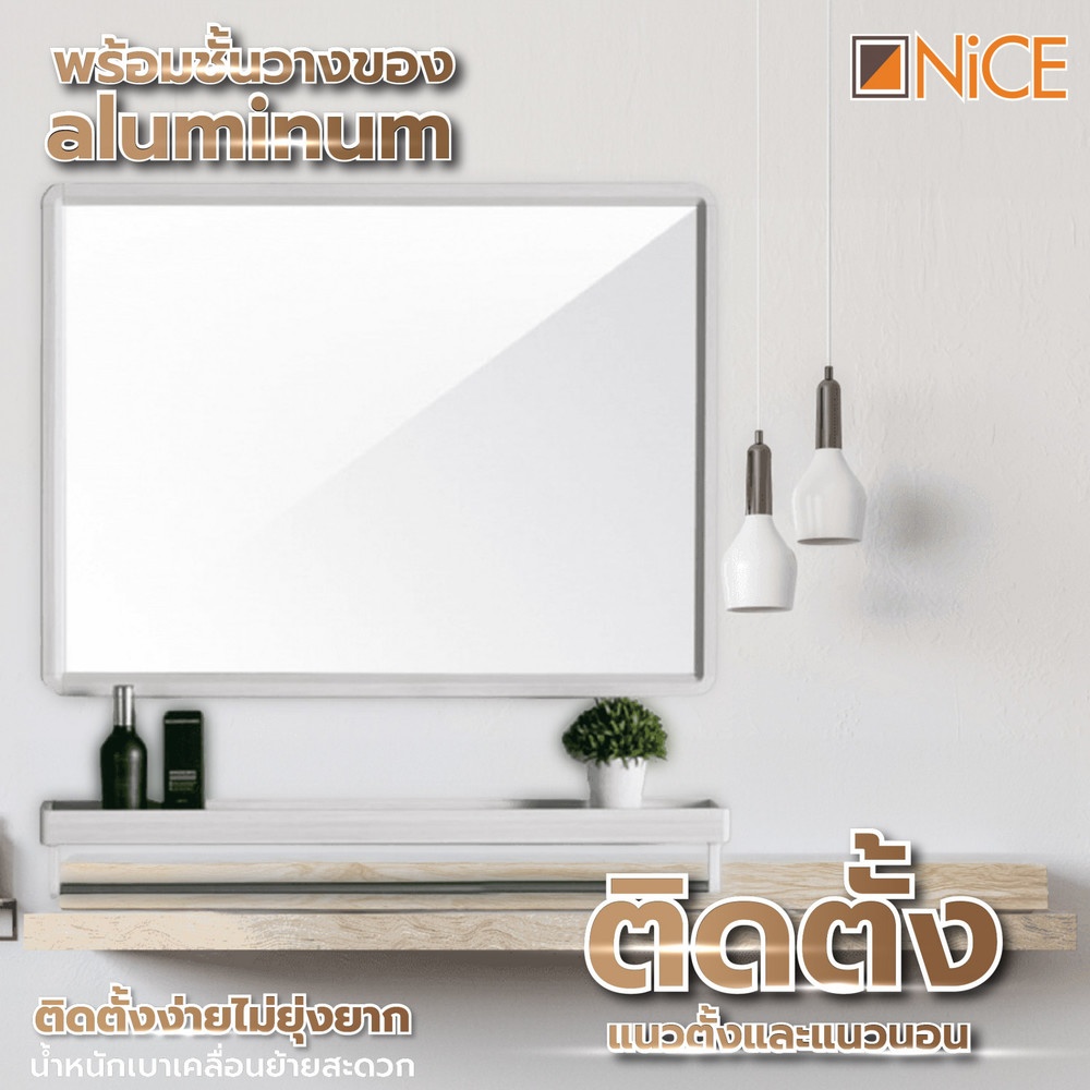 Nice ชุดกระจกอะลูมิเนียมพร้อมชั้นวาง ทรงเหลี่ยม รุ่น อาบิเกล GBH-LZ72102 ขนาด 40X60 ซม. สีขาว
