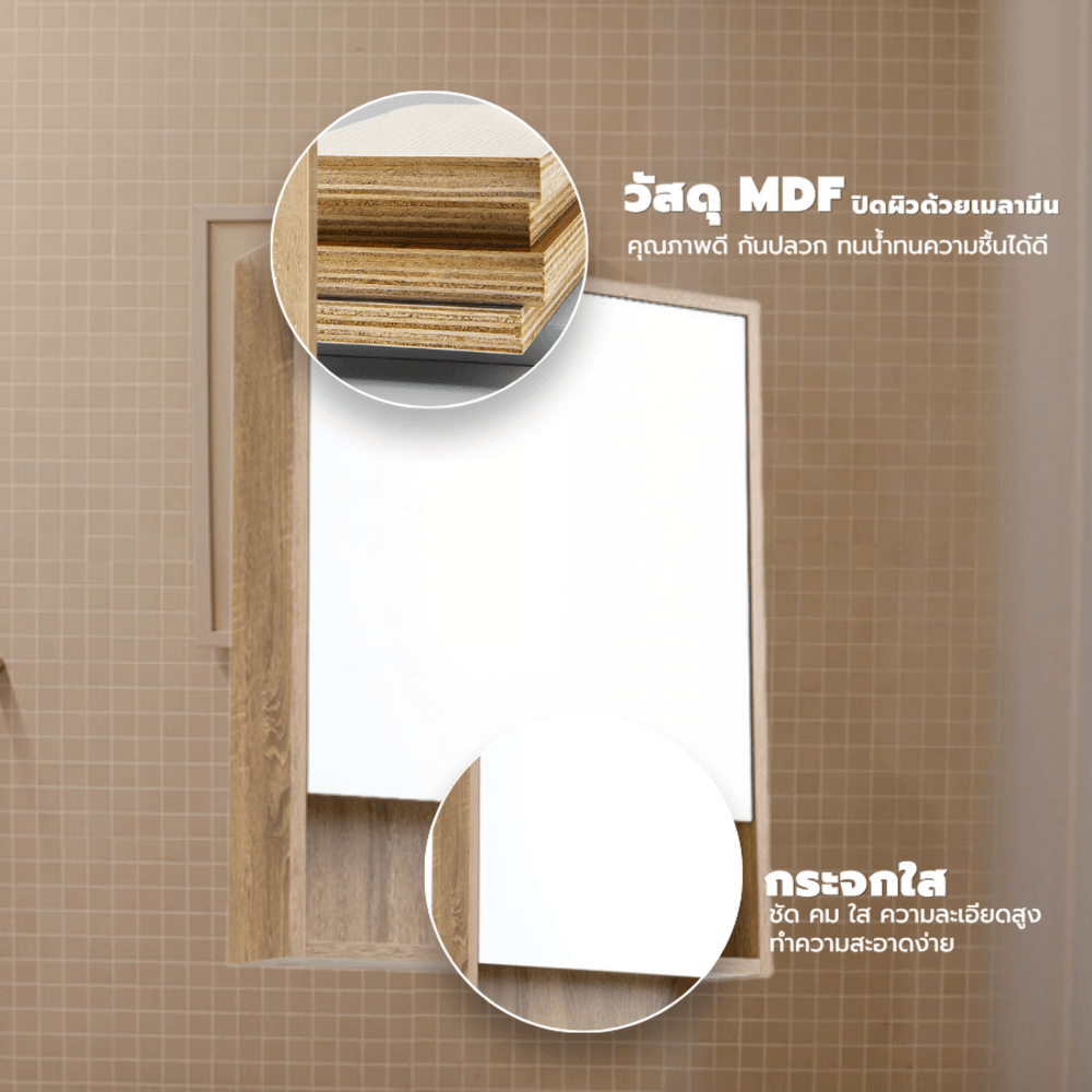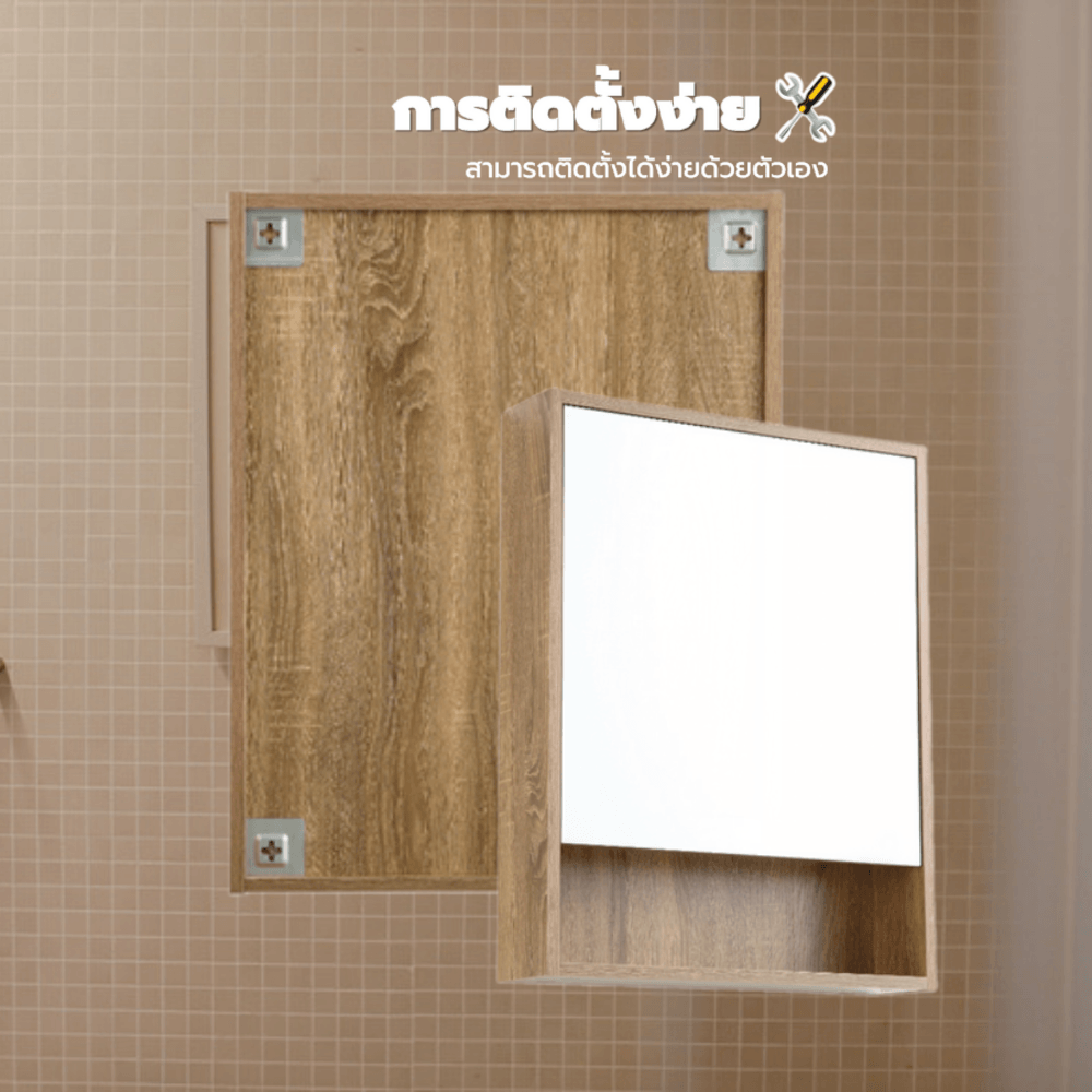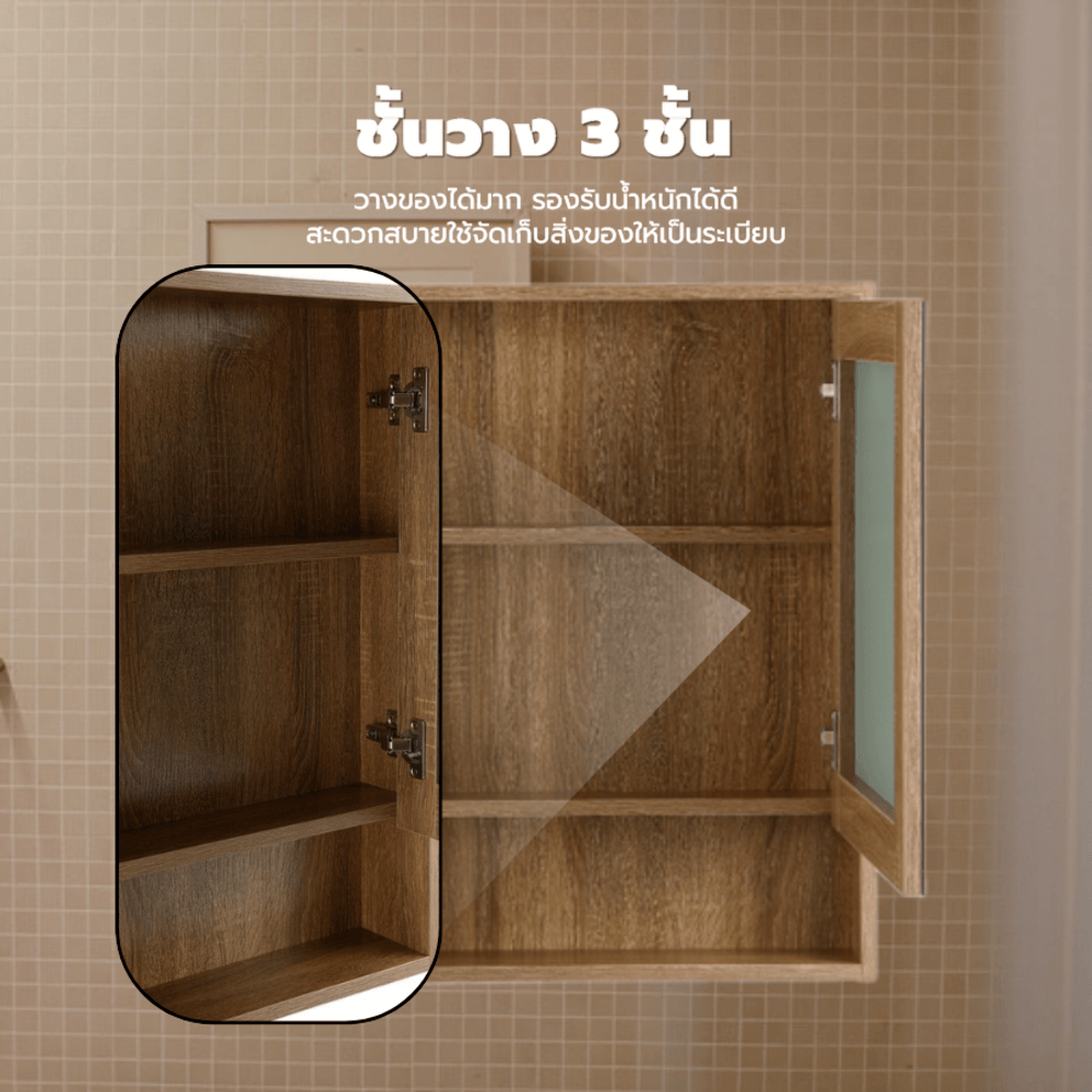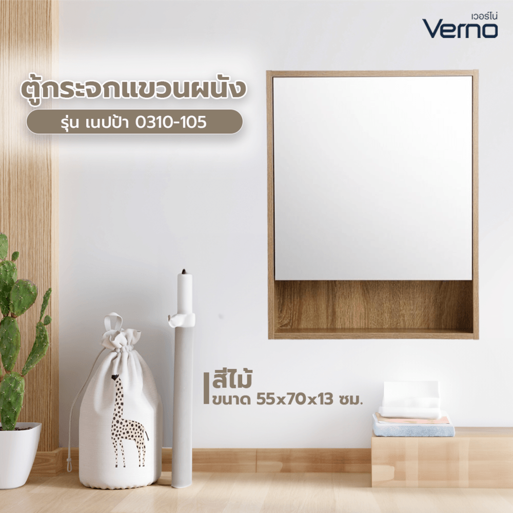 Verno ตู้กระจกแขวนผนััง รุ่น เนปป้า 0310-105 ขนาด 55x70x13 ซม. สีไม้