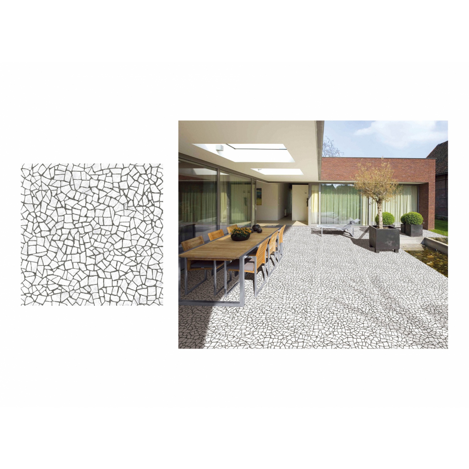 -มาพร้อมลวดลายมีเอกลักษณ์ มีความสวยงาม ผิวหน้ามันเงา เหมาะสำหรับปูพื้นตกแต่งภายในอาคาร เช่น ห้องรับแขก และห้องครัว ห้องนอน ทำให้ดูน่าอยู่อาศัยมากยิ่งขึ้น หรือผิวด้าน เหมาะสำหรับภายนอกอาคาร พื้นที่ลานกลางแจ้ง ลานจอดรถ ห้องน้ำ เป็นต้น