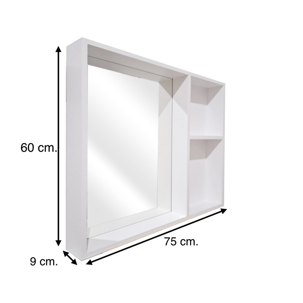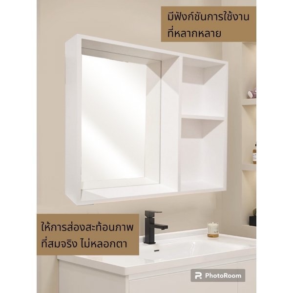 กรอบกระจกเงาพร้อมชั้นวางสิ่งของ ใช้สำหรับส่องสะท้อนภาพ ให้ภาพที่สมจริง พร้อมเพิ่มเติมฟังก์ชั่นสำหรับการจัดวางสิ่งของได้หลากหลายขนาดตามเหมาะสม ตัวสินค้ามีรูปแบบที่เรียบง่าย สวยงาม ทันสมัย สามารถติดตั้งได้เข้ากับทุกสไตล์การตกแต่ง เหมาะสำหรับการติดตั้งในห้องน้ำ ห้องแต่งตัว หรือติดตั้งตามจุดต่างๆตามที่ต้องการภายในบ้านและอาคาร