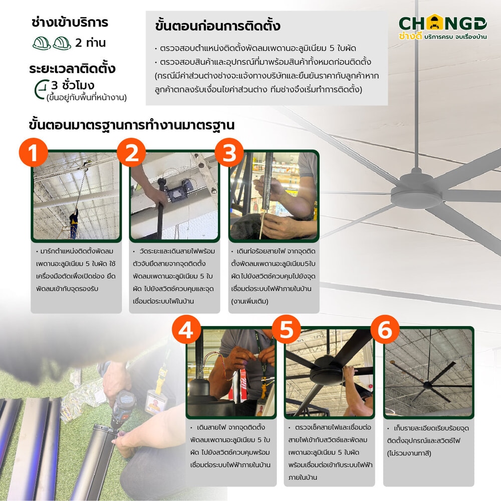ติดตั้งพัดลมอุตสาหกรรมโดยช่างมืออาชีพ มาตรฐานจาก CHANG D ผ่านการอบรมจากกรมพัฒนาฝีมือแรงงาน ให้คุณมั่นใจในคุณภาพและความปลอดภัยทุกขั้นตอนการบริการ บริการด้วยเครื่องมือมาตราฐานครบครัน ใส่ใจในทุกขั้นตอนการติดตั้ง และบริการ พร้อมบริการหลังการขายที่คุณสามารถไว้วางใจได้