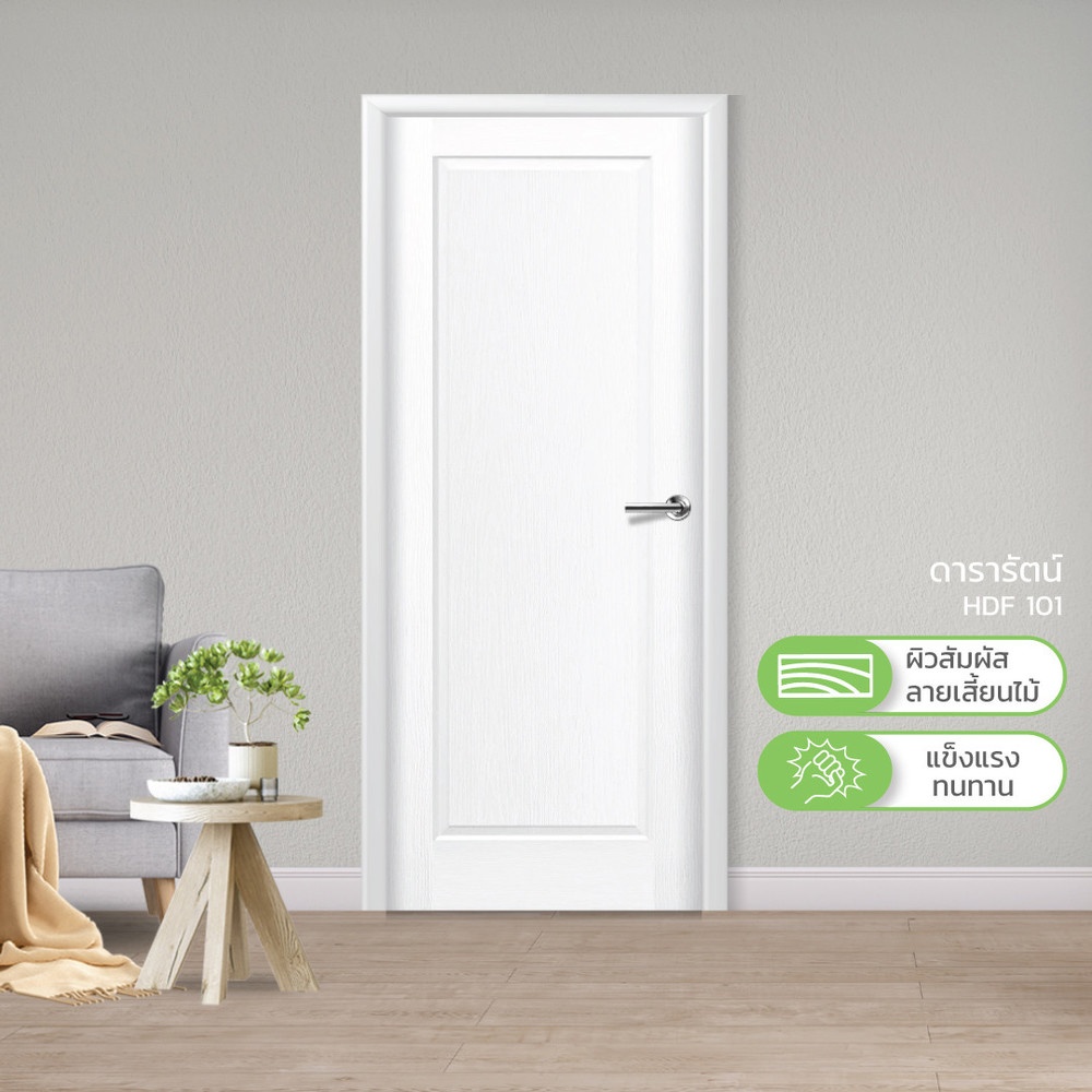 METRO ประตู HDF 101 ดารารัตน์ รองพื้นสีขาว ประตูไม้รักษ์โลก สำหรับติดตั้งภายใน ผลิตภัณฑ์จากแผ่นใยไม้ HDF เพิ่มลูกเล่นให้กับบานประตูด้วยผิวสัมผัสลายเสี้ยนไม้ธรรมชาติ เป็นผลิตภัณฑ์รักษ์โลก มั่นใจด้วยวัสดุจากไม้ทดแทน ไม่ทำลายสิ่งแวดล้อม โดยบริษัทเมโทรเป็นผู้ผลิตวัตถุดิบเองทุกขั้นตอน ลูกค้าจึงมั่นใจคุณภาพ ตั้งแต่การผลิตจนถึงมือลูกค้า