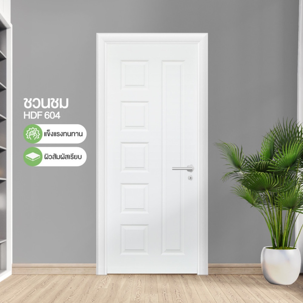METRO ประตู HDF 604 ชวนชม รองพื้นสีขาว ประตูไม้รักษ์โลก สำหรับติดตั้งภายใน ผลิตภัณฑ์จากแผ่นใยไม้ HDF เพิ่มลูกเล่นให้กับบานประตูด้วยผิวสัมผัสลายเสี้ยนไม้ธรรมชาติ เป็นผลิตภัณฑ์รักษ์โลก มั่นใจด้วยวัสดุจากไม้ทดแทน ไม่ทำลายสิ่งแวดล้อม โดยบริษัทเมโทรเป็นผู้ผลิตวัตถุดิบเองทุกขั้นตอน ลูกค้าจึงมั่นใจคุณภาพ ตั้งแต่การผลิตจนถึงมือลูกค้า