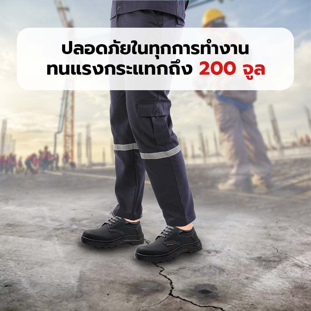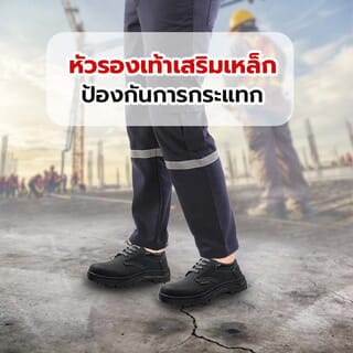 - หัวและพื้นรองเท้าเสริมเหล็ก ป้องกันของตกกระแทก