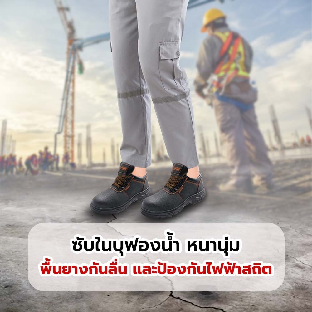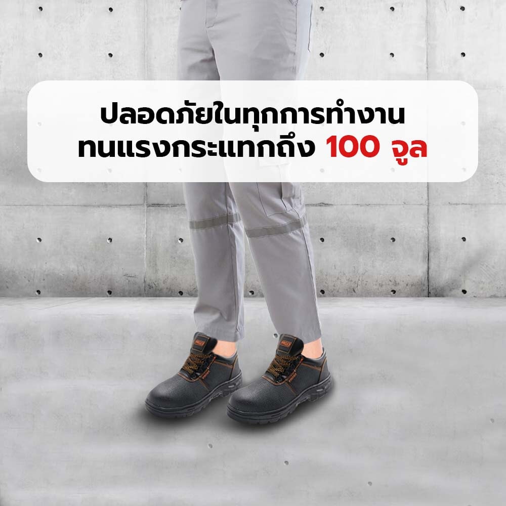 รองเท้าเซฟตี้ พื้นเหล็ก เบอร์44 ผ่านการทดสอบคุณสมบัติของหัวรองเท้าที่ใช้ป้องกันเท้าและนิ้วเท้าจากวัตถุที่ตกใส่หรือกลิ้งทับ