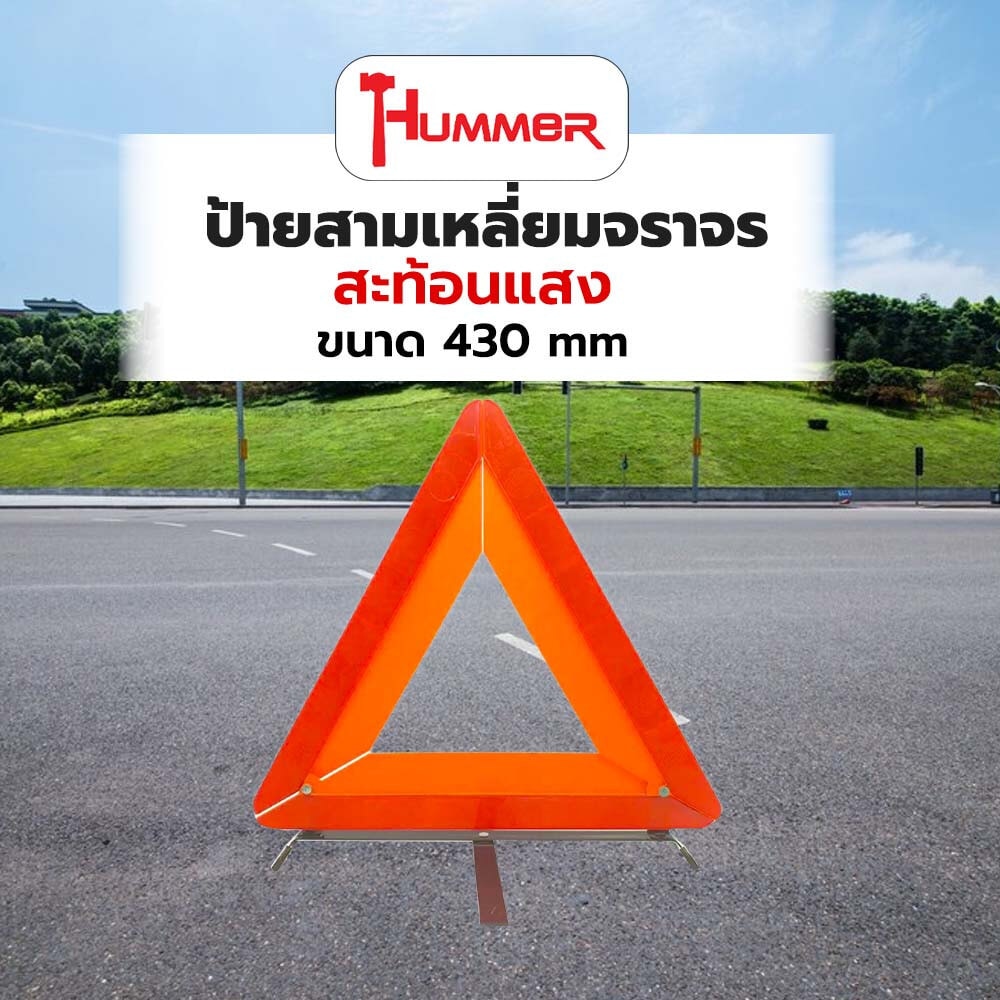 HUMMER ป้ายสามเหลี่ยมจราจร สะท้อนแสง รุ่น DTWT01 ขนาด 430 mm Pro-tx สีส้ม
