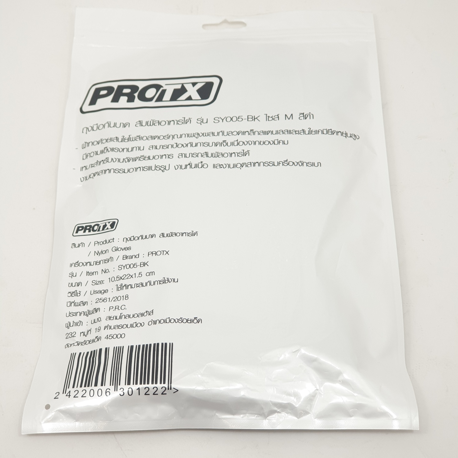 ถุงมือกันบาด สัมผัสอาหารได้ รุ่น SY005-BK ไซส์ M สีดำ ยี่ห้อPROTX