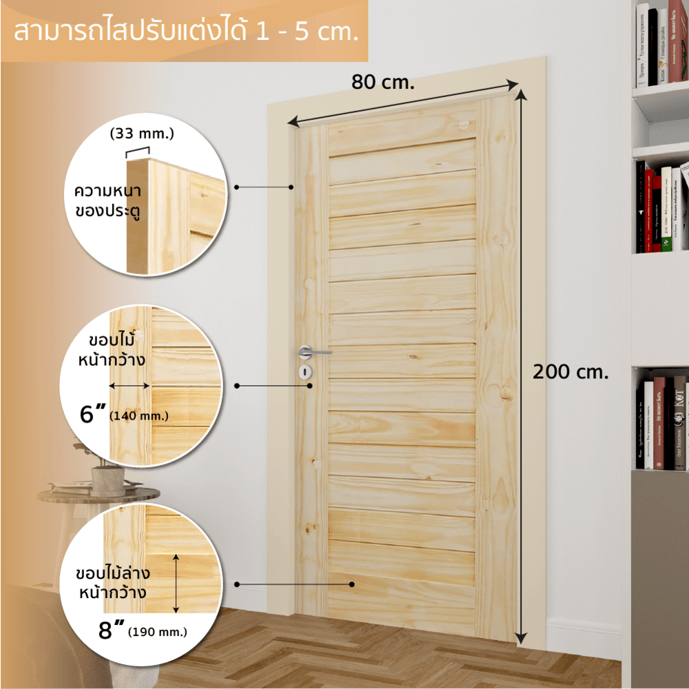 - บานประตูไม้สามารถติดตั้งกับวงกบไม้จริง หรือวงกบไม้สังเคราะห์ได้