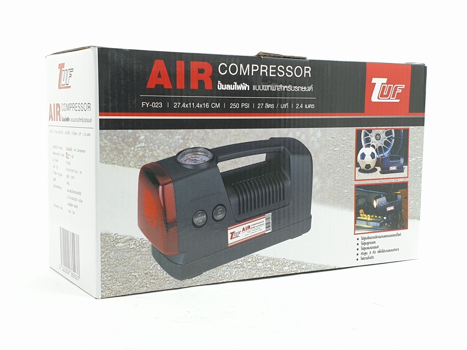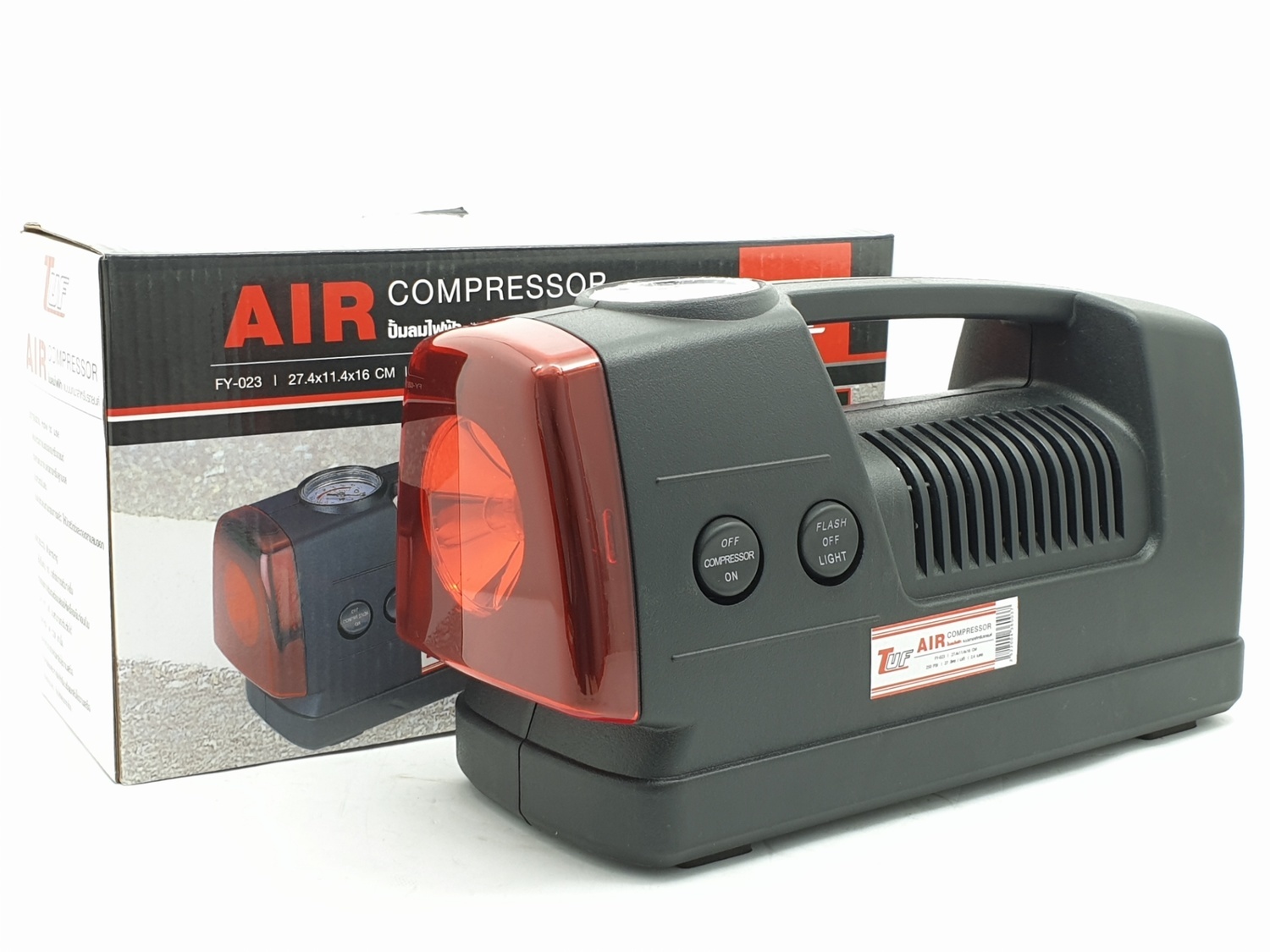 ใช้เติมลมรถยนต์ได้ทุกรุ่น/จักรยานยนต์และอุปกรณ์กีฬาลูกฟุตบอลพร้อมไฟฉายในตัว