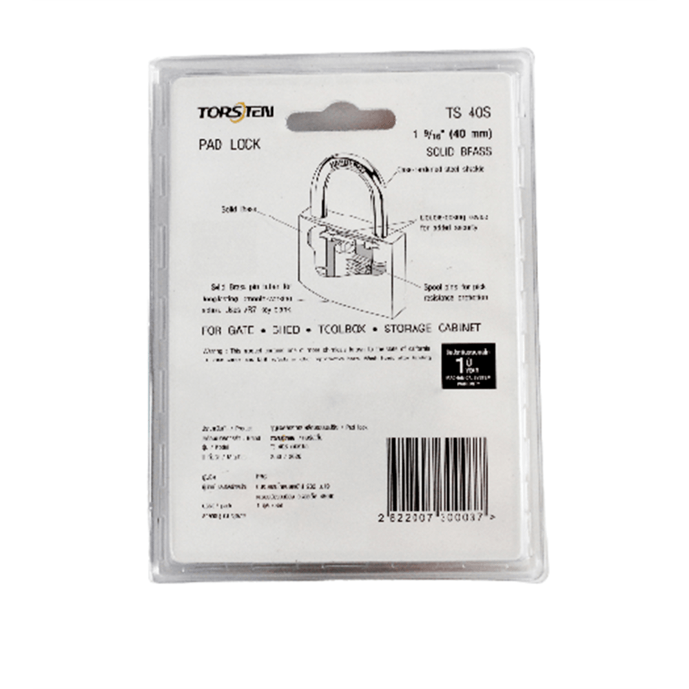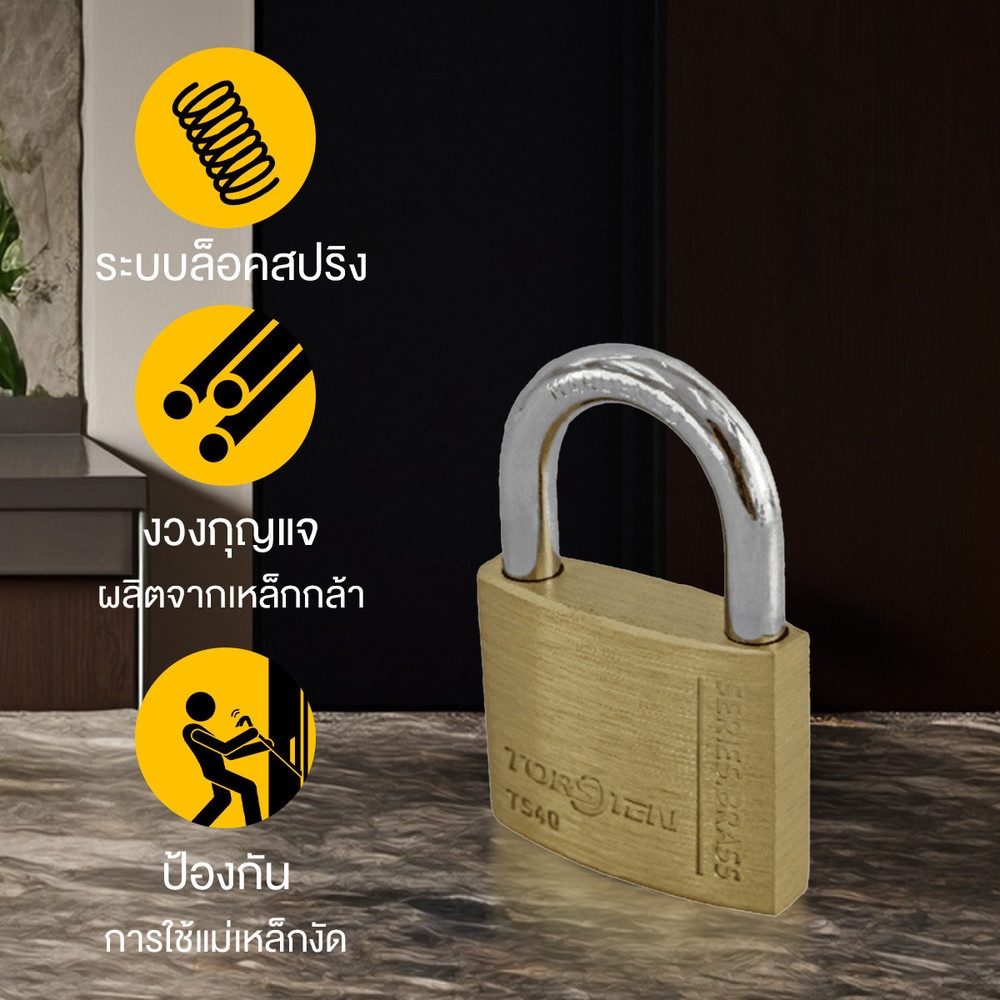 TORSTEN กุญแจคล้องทองเหลืองระบบสปริง (ห่วงสั้น) รุ่น TS 40S ขนาด 40มม.