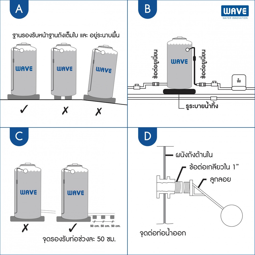 3. พื้นที่ติดตั้งของถังต้องแข็งแรงเพียงพอต่อการรับน้ำหนักของถังเก็บน้ำ