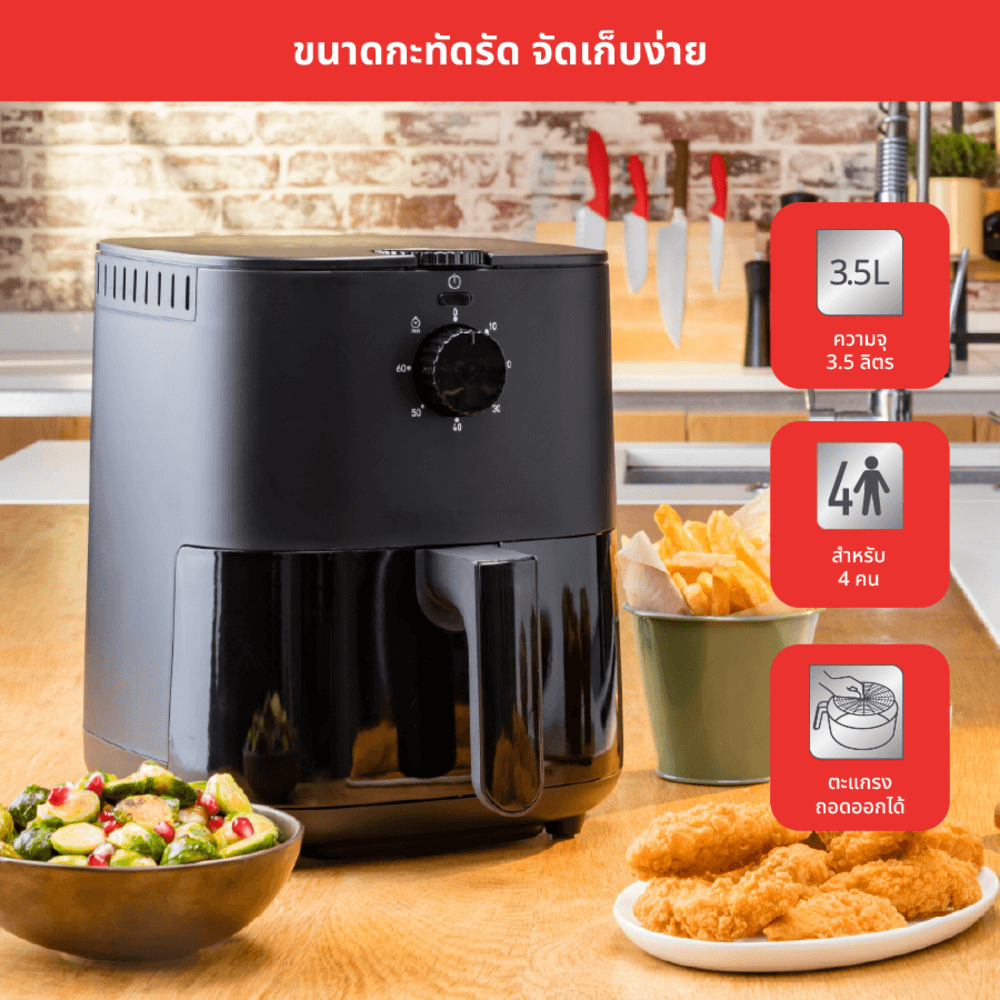 เพลิดเพลินกับมื้ออาหารแสนอร่อยและใส่ใจสุขภาพที่บ้านด้วย Tefal Easy Fry Essential Air Fryer ออกแบบมาเพื่อประหยัดพื้นที่ในครัวอันมีค่าโดยไม่ลดทอนคุณภาพ หม้อทอดไร้น้ำมันอเนกประสงค์ขนาด 3.5 ลิตร ให้ผลลัพธ์ที่รวดเร็ว* ในขณะที่ประหยัดพลังงานมากกว่าเตาอบแบบดั้งเดิมถึง 50%** ค้นพบเทคโนโลยีการทอดด้วยลมร้อนที่โดดเด่นของเราเพื่อให้กรอบนอกนุ่มใน และเนื้อด้านในนุ่มโดยใช้น้ำมันน้อยลง—ความเป็นไปได้ไม่มีที่สิ้นสุด ตั้งแต่เฟรนช์ฟราย นักเก็ต และผักไปจนถึงของหวาน