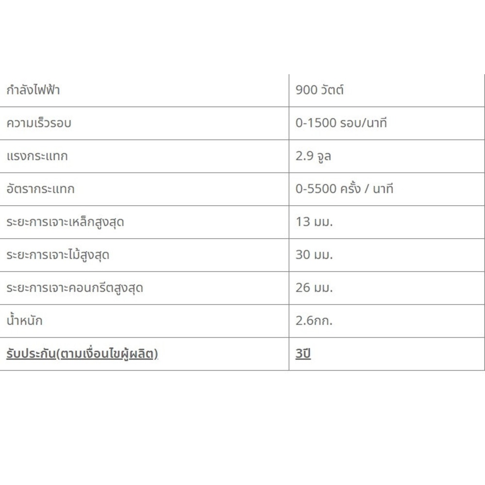 รับประกันคุณภาพในการผลิต ไม่รวมชิ้นส่วนที่สึกหรอตามการใช้งาน รายละเอียดเพิ่มเติมตามด้านหลังบัตรรับประกัน