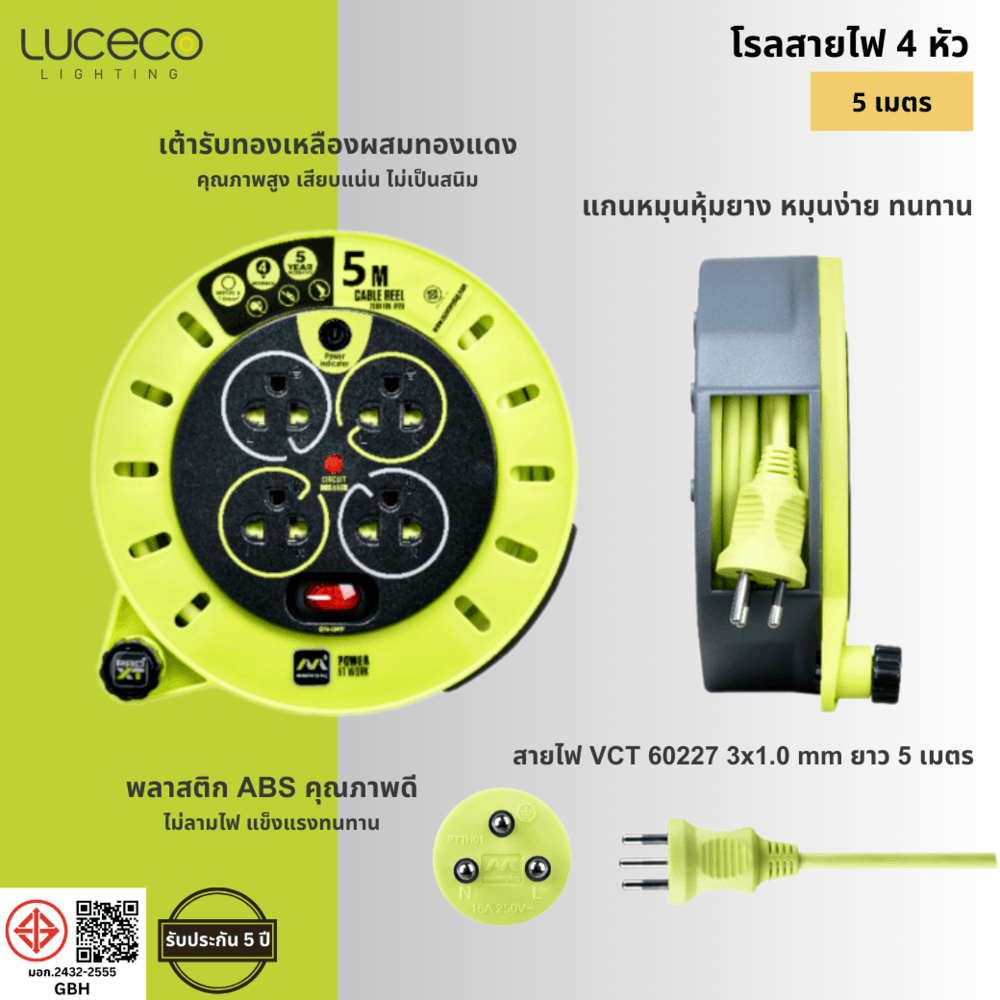 - สายไฟ VCT 60227 3x1.0 mm ยาว 5 เมตร พร้อมเต้าเสียบ 3 ขา 4 หัว