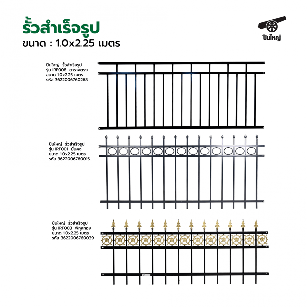 ปืนใหญ่ รั้วสำเร็จรูป สามารถติดตั้งได้กับกำแพงเดิมที่มีอยู่แล้ว ไม่ต้องรื้อกำแพงเดิมออก สามารถทนต่อสภาพอากาศที่แปรปรวนได้เป็นอย่างดี แข็งแรงทนทานอายุการใช้งานหลายปี