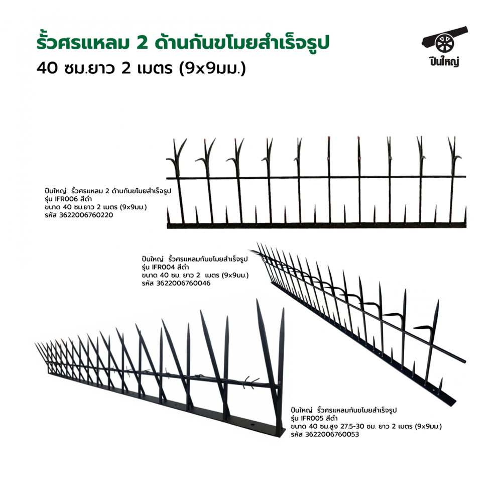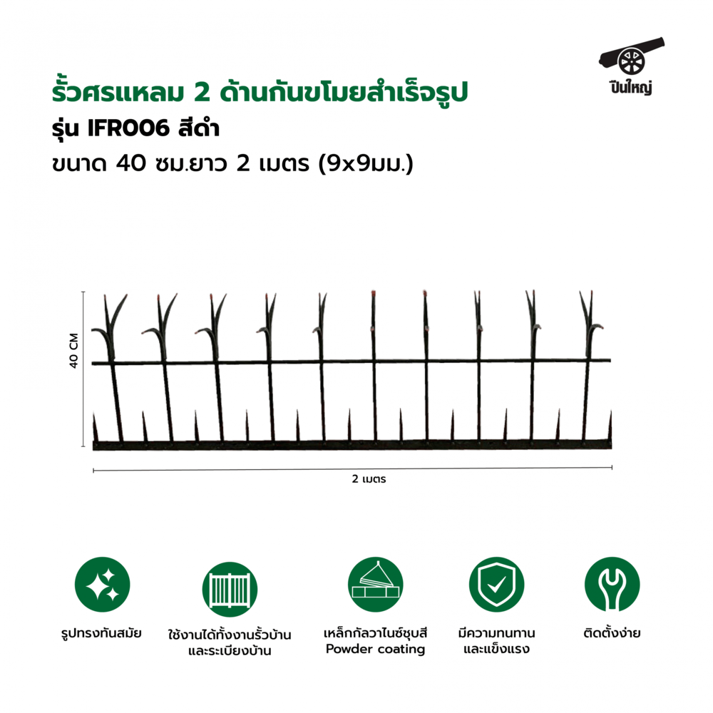 ปืนใหญ่ รั้วศรแหลมขโมย ผลิตจากเหล็กคุณดี เป็นอุปกรณ์เสริมความปลอดภัยที่ได้รับความนิยมอย่างมาก เนื่องจากมีคุณสมบัติเด่นที่ช่วยเพิ่มความปลอดภัยให้กับบ้าน ที่พักอาศัย
