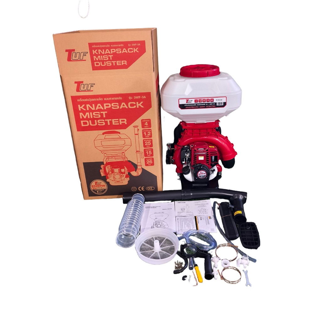 เครื่องยนต์ 4 จังหวะ 1.2 แรงม้า ประหยัดน้ำมัน เสียงเบา พ่นได้ไกล ถังจุ 26 ลิตร