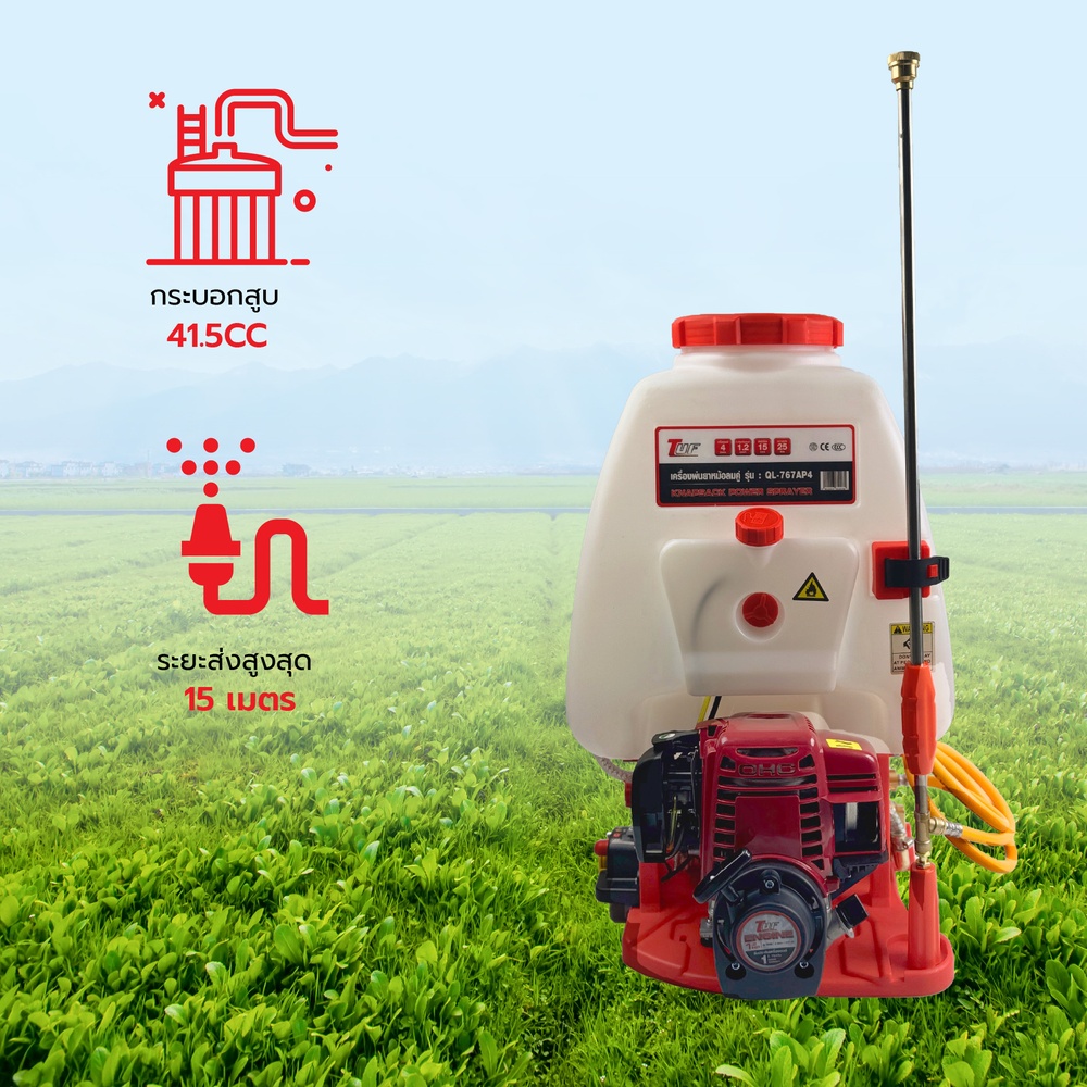 | เหมาะสำหรับ: พ่นยา พ่นปุ๋ย สารกำจัดแมลง งานไร่นา สวนผลไม้ ฯลฯ |