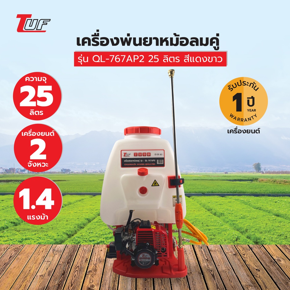 | ใช้งานหลัก: พ่นยา ฆ่าหญ้า กำจัดศัตรูพืช พ่นน้ำ พ่นปุ๋ย |
