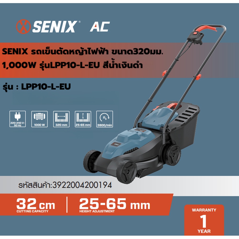SENIX รถเข็นตัดหญ้าไฟฟ้า 1000W รุ่น LPP10-L ขนาดใบตัด 32ซม
