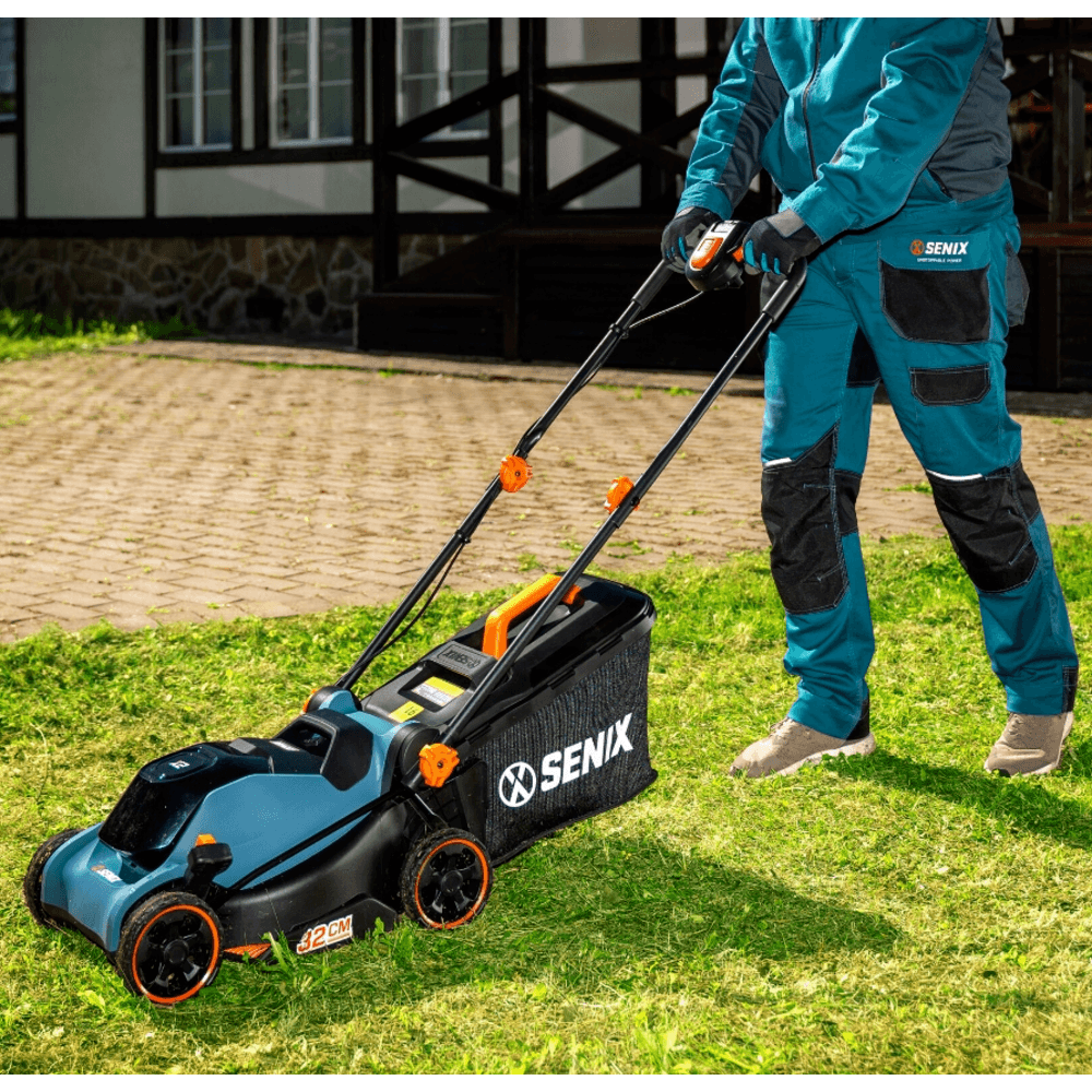 SENIX รถเข็นตัดหญ้าเดินตาม รุ่น LPPE16-M1-EU สีน้ำเงิน เป็นเครื่องมือสำหรับตัดหญ้าในสวนขนาดกลางถึงใหญ่ ด้วยกำลังไฟ 1600 วัตต์ ทำให้ตัดหญ้าได้อย่างรวดเร็วและมีประสิทธิภาพ ใบมีดคมกริบช่วยให้การตัดหญ้าเป็นไปอย่างเรียบเนียน ถุงเก็บหญ้าขนาดใหญ่ช่วยลดความถี่ในการเททิ้ง และสามารถปรับระดับการตัดได้ตามความต้องการ เหมาะสำหรับผู้ที่ต้องการดูแลสวนให้สวยงาม